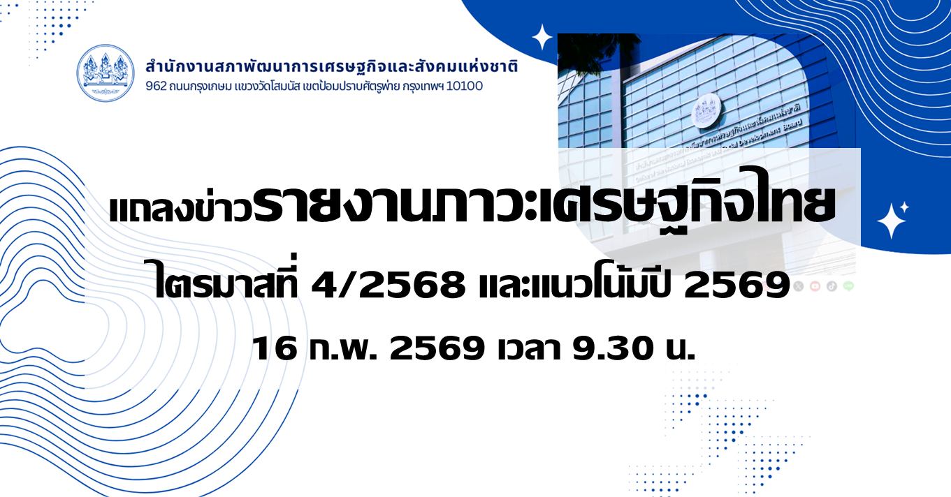 เมื่อวันที่ 4 กุมภาพันธ์ 2569 สำนักงานสภาพัฒนาการเศรษฐก…