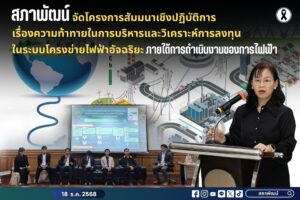 สภาพัฒน์ จัดโครงการสัมมนาเชิงปฏิบัติการ เรื่องความท้าทายในการบริหารและวิเคราะห์การลงทุนในระบบโครงข่ายไฟฟ้าอัจฉริยะ ภายใต้การดำเนินงานของการไฟฟ้า