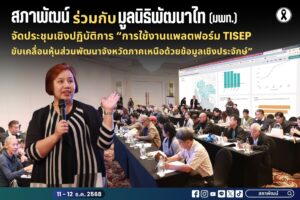 สภาพัฒน์ร่วมกับมูลนิธิพัฒนาไท (มพท.) จัดประชุมเชิงปฏิบัติการ “การใช้งานแพลตฟอร์ม TISEP ขับเคลื่อนหุ้นส่วนพัฒนาจังหวัดภาคเหนือด้วยข้อมูลเชิงประจักษ์”