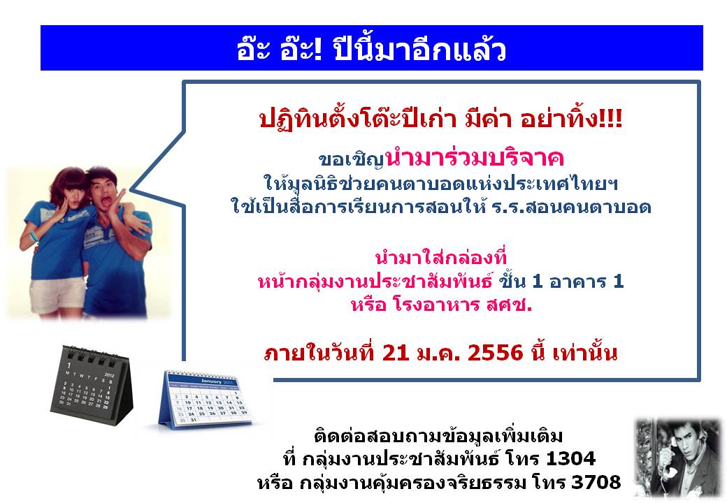 กลุ่มงานคุ้มครองจริยธรรมเชิญชวนบริจาคปฏิทินแบบตั้งโต๊ะที่ไม่ใช้แล้ว ปีที่ ๒