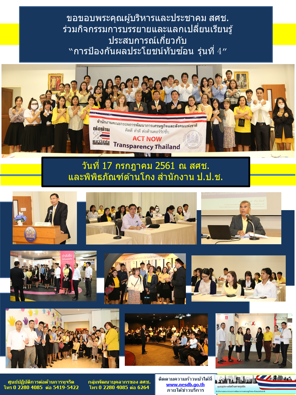 กิจกรรมการบรรยายและแลกเปลี่ยนเรียนรู้ เรื่องการป้องกันผลประโยชน์ทับซ้อน รุ่นที่ ๔