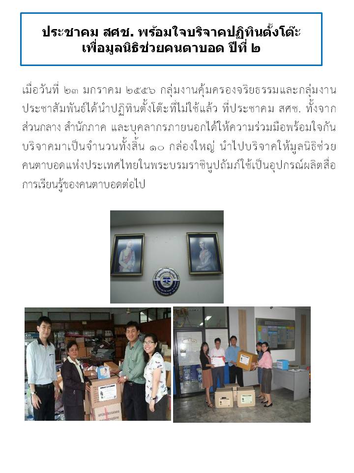 ประชาคม สศช. พร้อมใจบริจาคปฏิทินแบบตั้งโต๊ะที่ไม่ใช้แล้ว เพื่อมูลนิธิช่วยคนตาบอด ปีที่ ๒