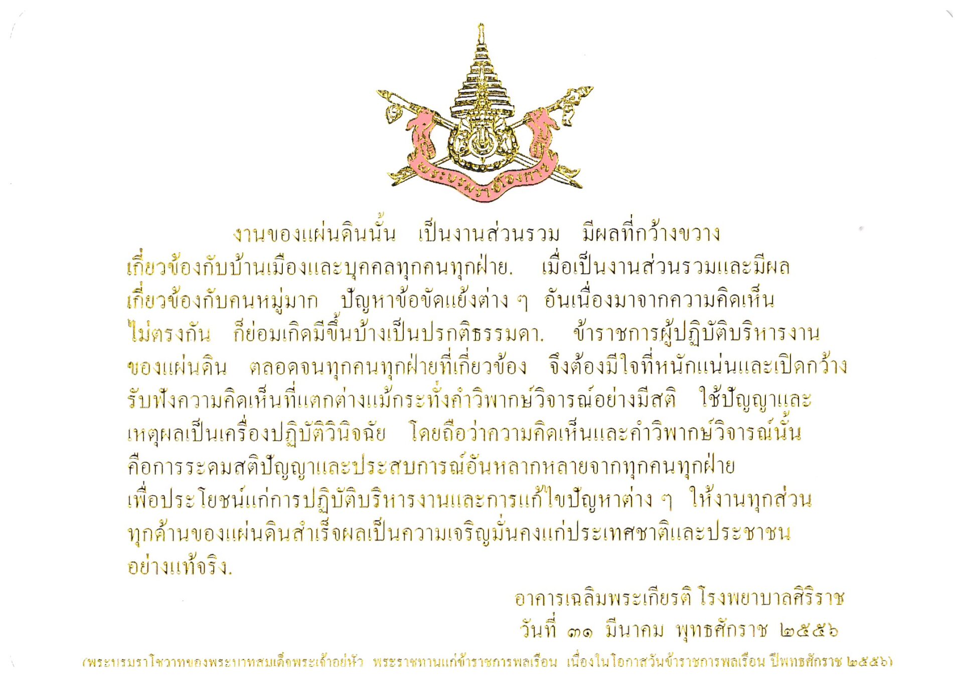 พระบรมราโชวาทของพระบาทสมเด็จพระเจ้าอยู่หัว พระราชทานเนื่องในโอกาสวันข้าราชการพลเรือน ปีพุทธศักราช ๒๕๕๖