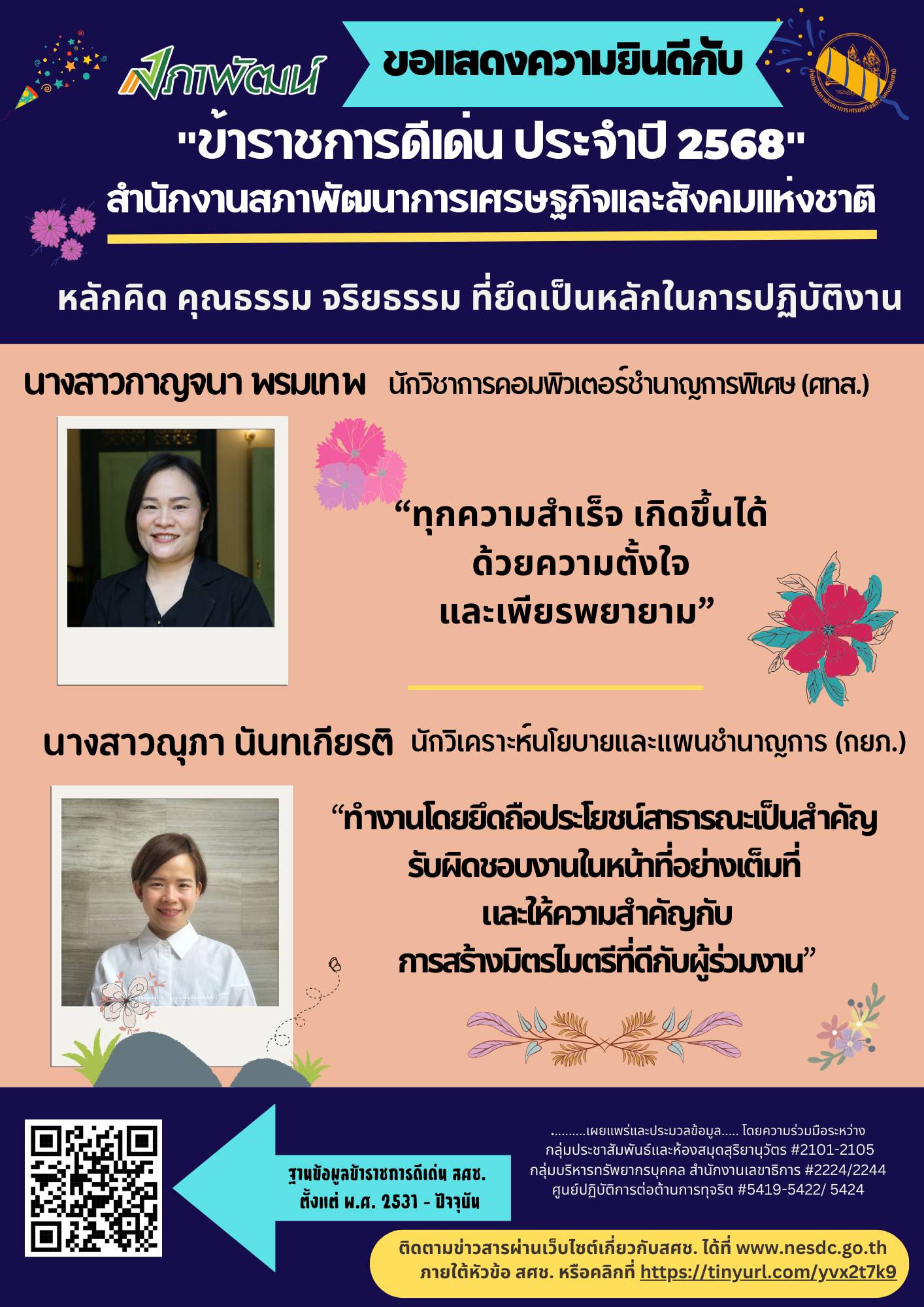 รายชื่อข้าราชการดีเด่น สศช. ประจำปี 2568 ศปท. 18 ก.พ. 2569