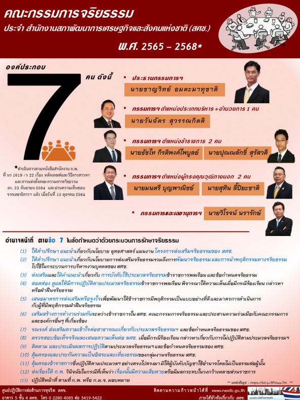 infographic คณะกรรมการจริยธรรมประจำ สศช. (พ.ศ. 2565-2568) infographic คณะกรรมการจริยธรรมประจำ สศช. (พ.ศ. 2565-2568)   11 มิ.ย. 2562
