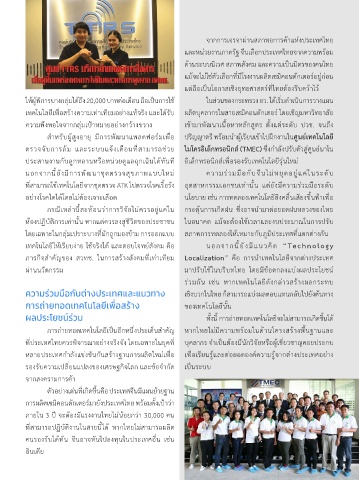 ภูารกิจสำาคัญของ สวที่ช้. ในการสร้างสังคมที่่�เที่่าเที่่ยู่ม  Localization” ค่อ การนำาเที่คโนโลยู่่จากต่่างปีระเที่ศ