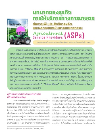 การให้บริการด้านัการเกษตร หรือ Agricultural Service Providers (ASPs) ได้เข้ามามีบทบาท