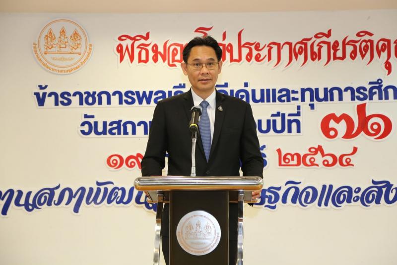 ทั้งนี้ ทุนการศึกษาที่มอบให้แก่บุตร-ธิดา ของบุคลากร สศช. นี้ มีวัตถุประสงค์เพื่อเป็นการสร้างขวัญกำลังใจและช่วยแบ่งเบาภาระของเจ้าหน้าที่ผู้มีรายได้น้อย ซึ่งได้ดำเนินการมาเป็นระยะเวลา 27 ปีติดต่อกัน สำหรับในปี 2564 นี้ สำนักงานฯ ได้รับความอนุเคราะห์จากอดีตข้าราชการของสำนักงานฯ ผู้บริหาร และเจ้าหน้าที่ของสำนักงานฯ เป็นอย่างดียิ่ง โดยได้ร่วมบริจาคเงินเพื่อเป็นทุนการศึกษาจำนวน 221,800 บาท ซึ่งได้พิจารณาจัดสรรทุนให้แก่บุตร-ธิดาของข้าราชการ ลูกจ้างประจำและพนักงานราชการ ที่มีคุณสมบัติเหมาะสมตามหลักเกณฑ์ ทุนละ 6,000 บาท และกำหนดหลักเกณฑ์การจัดสรรทุนการศึกษาเพิ่มเติม กรณีบุตร-ธิดามีผลการศึกษาอยู่ในเกณฑ์ดี ได้รับเพิ่มทุนละ 1,000 – 2,000 บาท โดยในวันนี้มีผู้ได้รับทุนการศึกษาทั้งสิ้นจำนวน 22 ราย รวม 29 ทุน จำแนกเป็น ทุนละ 6,000 บาท จำนวน 14 ทุน ทุนละ 7,000 บาท จำนวน 8 ทุน และทุนละ 8,000 บาท จำนวน 7 ทุน