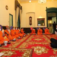 ในโอกาสนี้ พระธรรมวชิรโมลี (ทองสูรย์ สุริยโชโต) เจ้าอาวาสวัดยานนาวา ได้อำนวยพรให้กับผู้บริหารและประชาคม สศช. ความว่า “อาตมาได้รับทราบจากท่านอาจารย์ว่าสมัยก่อนพระพุทธวรญาณ (หลวงพ่อทอง) อดีตเจ้าอาวาสวัดเบญจมบพิตรดุสิตวนาราม ได้มารับบิณฑบาตพระยาสุริยานุวัตรเป็นประจำ แสดงว่าท่านเป็นผู้ที่มีใจเป็นบุญเป็นกุศล แสดงตนเป็นพุทธมามกะ หมายความว่าเป็นผู้ที่มีคุณธรรมซึ่งเป็นหลักสำคัญทางพุทธศาสนา 3 ประการ คือ (1) การเป็นผู้มีเสียสละแบ่งปันสรรให้ บุญจะเกิดด้วยการเสียสละแบ่งปันสรรให้ ดังที่ท่านทั้งหลายมาวันนี้ก็เป็นการเจริญรอยตามเบื้องบาทผู้นำในอดีตคุณพ่อคุณแม่ครูบาอาจารย์ของพวกเรา (2) มีคุณธรรม คือการรักษาศีล 5 คนเกิดมาเป็นมนุษย์ได้ต้องอาศัยศีล 5 เป็นพื้นฐาน หากพวกเรารักษาศีล 5 สมบูรณ์ทั้งร่างกายและจิตใจ ศีลทำให้มีปกติกาย ปกติวาจา จิตใจจะคิดเป็นอย่างไรยังไม่ผิดศีลแต่จะเป็นมโนทุจริต แต่ถ้าแสดงออกมาเป็นคำพูด ทางด้านร่างกายถือว่าเป็นการผิดศีล (3) การเจริญเมตตาภาวนา คือการพยายามพิจารณาตัวเองอยู่เป็นประจำ ดังที่พระพุทธเจ้าตรัสสอนว่า “ตนเป็นที่พึ่งแห่งตน”