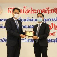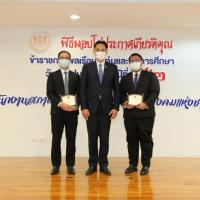 จากนั้น เลขาธิการ สศช. เป็นประธานในพิธีมอบโล่ประกาศเกียรติคุณข้าราชการพลเรือนดีเด่นของ สศช. 2 คน ได้แก่ นายพิชิตชัย กิ่งพวง นักวิเคราะห์นโยบายและแผนชำนาญการ กองยุทธศาสตร์และประสานการพัฒนาภาค และนายวิทยารัฐ พวงงาม รักษาการในตำแหน่งนักวิเคราะห์นโยบายและแผนชำนาญการ กองยุทธศาสตร์การพัฒนาทรัพยากรมนุษย์และสังคม และมอบทุนการศึกษาแก่บุตร-ธิดาของข้าราชการ ลูกจ้างประจำ และพนักงานราชการ ณ ห้องแถลงข่าว อาคาร 5 ชั้น 1