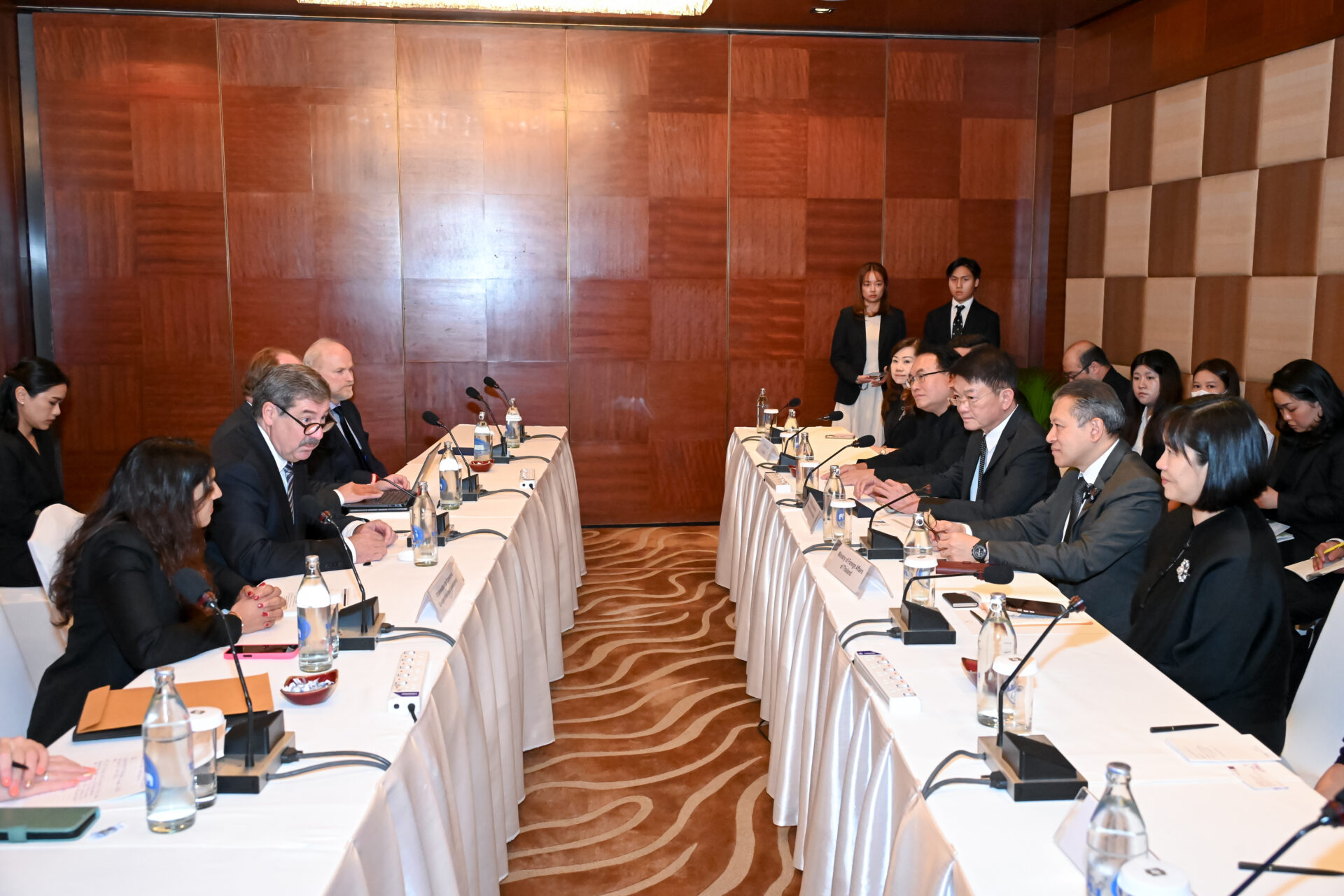 นอกจากนี้ รองเลขาธิการ OECD ยังพบหารือกับผู้แทนภาคส่วนต่าง ๆ ประกอบด้วย (1) ผู้แทนคณะกรรมการร่วมภาคเอกชน 3 สถาบัน (กกร.) โดยเน้นย้ำว่ากระบวนการเข้าเป็นสมาชิกจะช่วยสร้างโอกาสทางธุรกิจและผลักดันมาตรฐานที่เกี่ยวข้องกับการดำเนินธุรกิจ อาทิ การศึกษา แรงงาน การพัฒนาและเรียนรู้ทักษะใหม่ให้เท่าทันต่อการเปลี่ยนแปลงทางเทคโนโลยี ซึ่งภาคเอกชนจะต้องมีความยืดหยุ่นต่อการปรับตัวดังกล่าวควบคู่ไปด้วย ในขณะที่ภาคเอกชนไทยย้ำถึงความพร้อมในการร่วมมือและสนับสนุนรัฐบาลไทยในกระบวนการเข้าเป็นสมาชิก OECD และเสนอให้มีการสำรวจผลกระทบที่อาจเกิดขึ้นกับภาคเอกชนจากการปรับมาตรฐานให้สอดคล้อง OECD เพื่อให้ภาคเอกชนเกิดความเชื่อมั่นและเตรียมรับมือกับการเปลี่ยนแปลงได้อย่างมีประสิทธิภาพ และ (2) ผู้แทนสภาองค์การลูกจ้างแรงงานอุตสาหกรรมเอกชน และผู้แทนสภาองค์การลูกจ้างสมาพันธ์แห่งประเทศไทย ซึ่งทั้งสององค์การได้นำเสนอรองเลขาธิการ OECD เกี่ยวกับประเด็นด้านแรงงานที่ต้องได้รับการผลักดันและแก้ไขอย่างเร่งด่วน อาทิ มาตรฐานแรงงาน สิทธิแรงงาน การตั้งสหภาพแรงงานทั้งไทยและข้ามชาติ ตลอดจนการได้รับการสนับสนุนให้ไทยได้ลงนามในอนุสัญญาขององค์การแรงงานระหว่างประเทศ ฉบับที่ 87 ว่าด้วยเสรีภาพในการสมาคม (ILO Convention 87: Freedom of Association and Protection of the Right to Organise) และอนุสัญญาขององค์การแรงงานระหว่างประเทศ ฉบับที่ 98 ว่าด้วยสิทธิในการรวมตัวและเจรจาต่อรองร่วม (ILO Convention 98: Right to Organise and Collective Bargaining) เพื่อสร้างมาตรฐานด้านแรงงานของไทยที่เป็นธรรมและทัดเทียมกับสากล