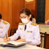 วันนี้ (1 มกราคม 2565) นายวิโรจน์ นรารักษ์ รองเลขาธิการฯ รักษาราชการแทนเลขาธิการสภาพัฒนาการเศรษฐกิจและสังคมแห่งชาติ พร้อมด้วยคณะผู้บริหารและเจ้าหน้าที่ สำนักงานสภาพัฒนาการเศรษฐกิจและสังคมแห่งชาติ (สศช.) ร่วมลงนามถวายพระพรและถวายแจกันดอกไม้ แด่พระบาทสมเด็จพระเจ้าอยู่หัว และสมเด็จพระนางเจ้า ฯ พระบรมราชินี เนื่องในโอกาสวันขึ้นปีใหม่ 2565 ณ ศาลาสหทัยสมาคม พระบรมมหาราชวัง