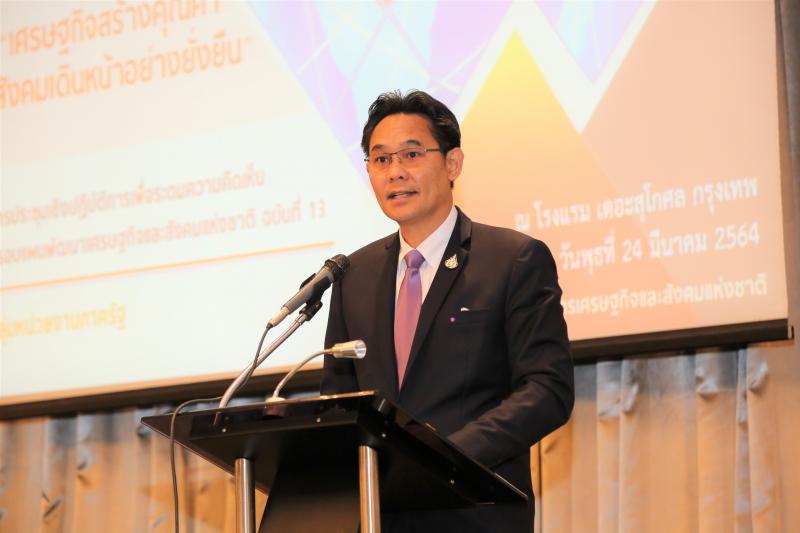 เมื่อวันที่ 24 มีนาคม 2564 นายดนุชา พิชยนันท์ เลขาธิการสภาพัฒนาการเศรษฐกิจและสังคมแห่งชาติ เป็นประธานการประชุมระดมความเห็นต่อ “กรอบแผนพัฒนาเศรษฐกิจและสังคมแห่งชาติ ฉบับที่ 13 (พ.ศ. 2566 – 2570)” กลุ่มหน่วยงานภาครัฐ ณ ห้องกมลทิพย์ โรงแรม เดอะ สุโกศล กรุงเทพ โดยมีผู้เข้าร่วมประชุม อาทิ นายสุทธิพงษ์ จุลเจริญ อธิบดีกรมการพัฒนาชุมชน นายนิวัตน์ ลิ้มสุขนิรันดร์ อธิบดีกรมพลศึกษา นางสาวภัทราภรณ์ โสเจยยะ รองอธิบดีกรมพัฒนาที่ดิน นายปิยะ ศิริลักษณ์ รองอธิบดีกรมวิทยาศาสตร์การแพทย์ นายพีรศักดิ์ รัตนะ รองเลขาธิการสภาการศึกษา และผู้บริหารระดับสูงของหน่วยงานราชการ รัฐวิสาหกิจ และองค์การมหาชน จำนวนประมาณ 200 คน