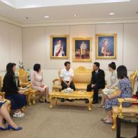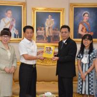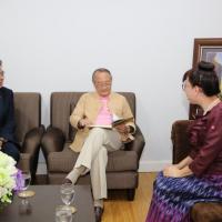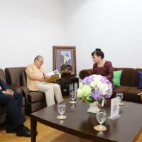 เมื่อเร็วๆ นี้ นายวิโรจน์ นรารักษ์ รองเลขาธิการสภาพัฒนาการเศรษฐกิจและสังคมแห่งชาติ พร้อมด้วย นางสาวกัญญารักษ์ ศรีทองรุ่ง ที่ปรึกษาด้านนโยบายและแผนงาน สำนักงานสภาพัฒนาการเศรษฐกิจและสังคมแห่งชาติ (สศช.) ได้เข้าพบ ดร.สุเมธ ตันติเวชกุล เลขาธิการมูลนิธิชัยพัฒนา เพื่อมอบหนังสือ “แนวพระราชดำริการพัฒนาสู่ความยั่งยืน” ในฐานะประธานคณะที่ปรึกษาจัดทำหนังสือดังกล่าว ณ มูลนิธิชัยพัฒนา