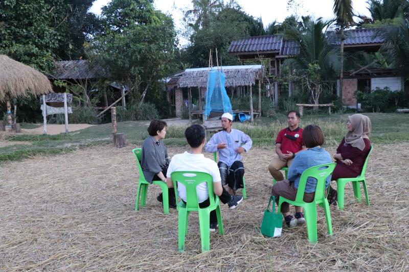จากนั้นคณะ สศช. ได้ลงพื้นที่ศึกษาดูงานการจัดการของชุมชนในการสร้างโอกาสต่าง ๆ ดังกล่าวข้าวต้น ณ มัสยิดส่งเสริมสุขภาพบ้านกรือซอ ที่มีบทบาทสำคัญในการดูแลสุขภาพคนในชุมชน กิจกรรมเลี้ยงปลา เพาะเห็ด เพื่อเป็นอาหารกลางวันแก่เด็กในชุมชน สุดท้ายเยี่ยมชมโรงเรียนชาวนา และร่วมพูดคุยกับวิทยากรแหล่งเรียนรู้ของโรงเรียนชาวนา ที่บอกเล่าถึงกระบวนการฟื้นฟูนาร้างในอดีตของชุมชน มาสู่การทำเกษตรและการสร้างอาหารปลอดภัย สร้างรายได้และสร้างอาชีพ เป็นแหล่งรวมกิจกรรมความสามัคคี ร่วมแรง ร่วมใจ จนกระทั่งทุกวันนี้ เป็นแหล่งเรียนรู้ที่สำคัญชุมชน