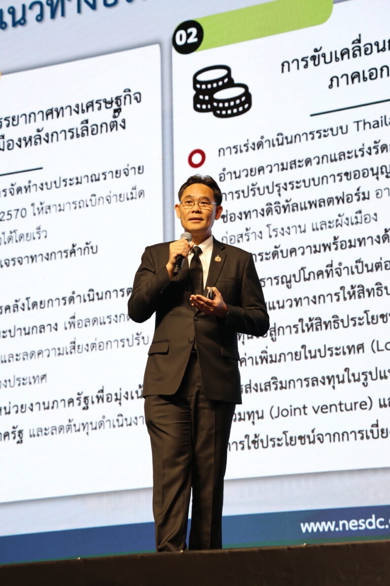 เลขาธิการฯ กล่าวสรุปในตอนท้ายว่า “ความสำเร็จในการขับเคลื่อนเศรษฐกิจไทยให้ก้าวข้ามความเปลี่ยนแปลงนี้ ต้องอาศัยความร่วมมืออย่างบูรณาการจากทุกภาคส่วน เพื่อสร้างความเชื่อมั่นและสร้างความเข้มแข็งให้แก่ฐานรากเศรษฐกิจของประเทศอย่างยั่งยืน”
