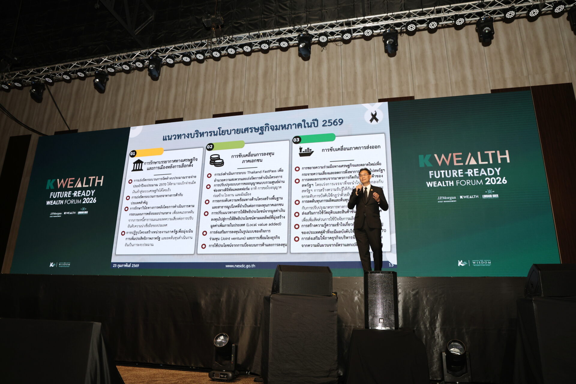 เลขาธิการ สศช. บรรยายพิเศษในหัวข้อ “Thailand’s Next Wave, Economic Momentum” พร้อมกางยุทธศาสตร์ “Next Wave” รับมือปัจจัยเสี่ยงโลกปี 69 ในงาน K WEALTH FORUM 2026