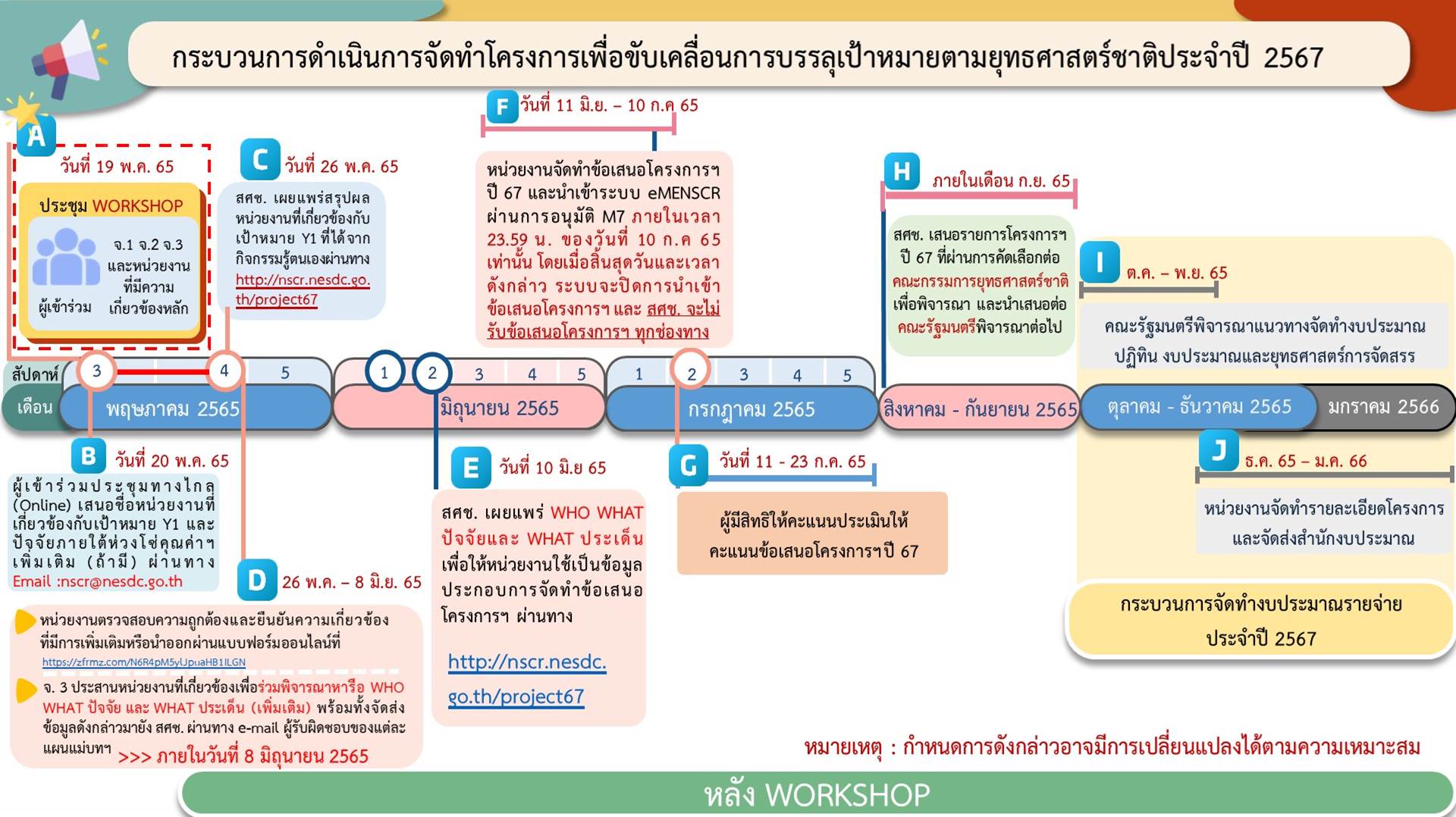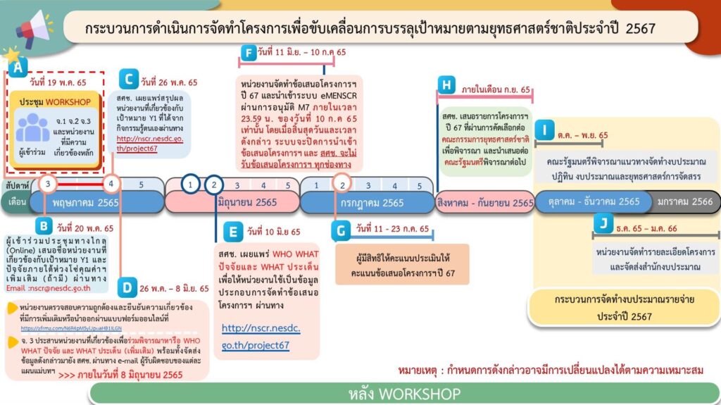 Timeline การดำเนินการตามกระบวนการจัดทำโครงการเพื่อขับเคลื่อนการบรรลุเป้าหมายตามยุทธศาสตร์ชาติ ประจำปี พ.ศ. 2567