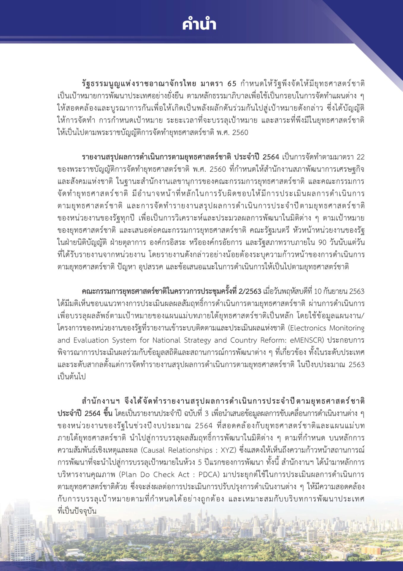 รายงานสรุปผลการดำเนินการตามยุทธศาสตร์ชาติ ประจำปี 2564