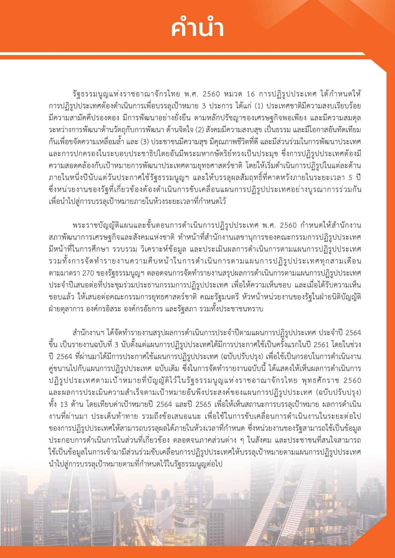 รายงานสรุปผลการดำเนินการตามแผนการปฏิรูปประเทศ ประจำปี 2564