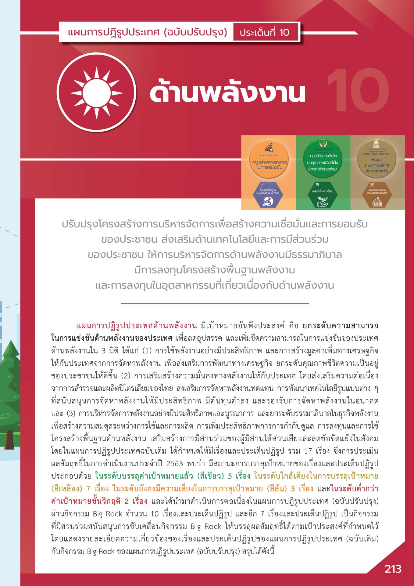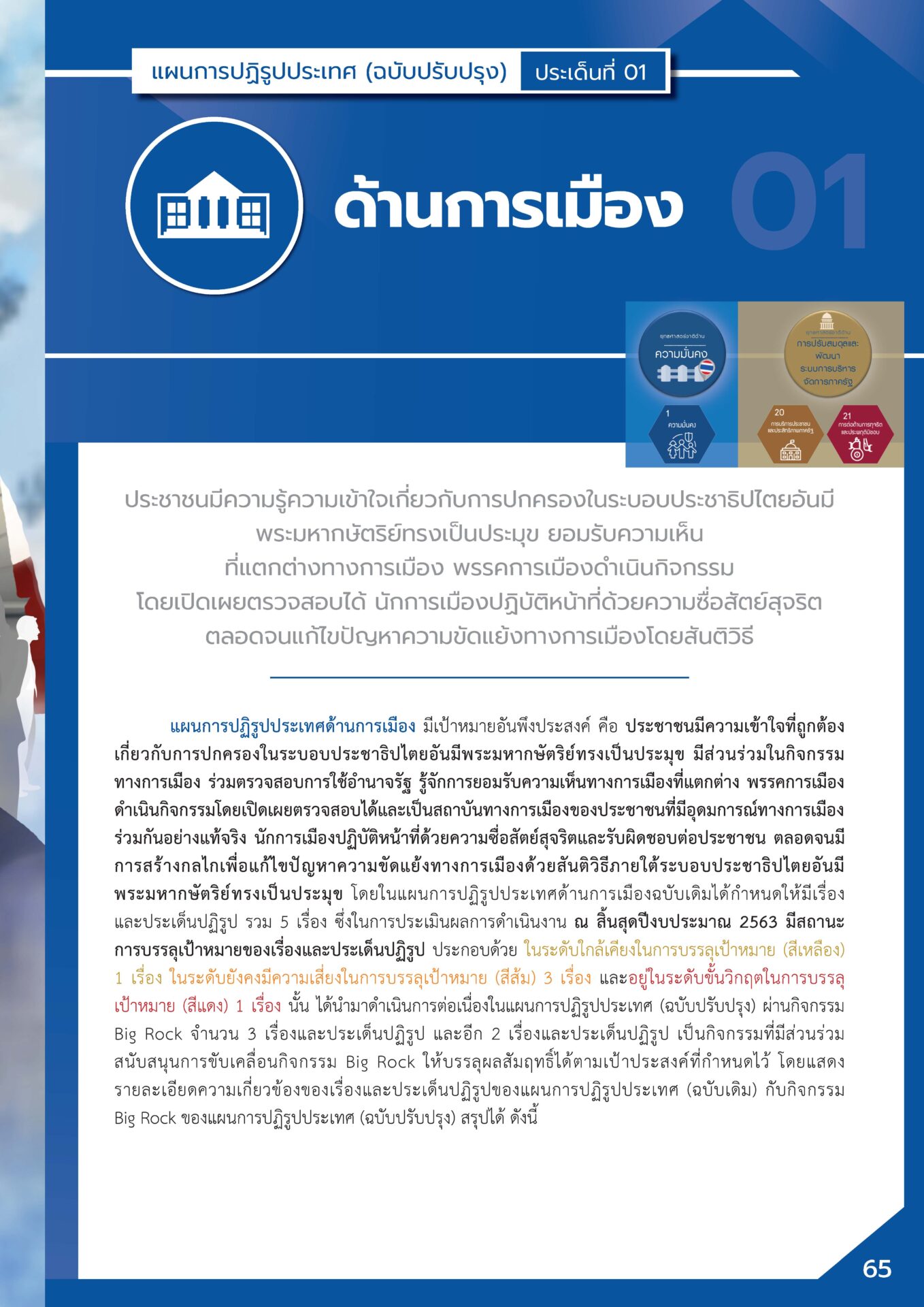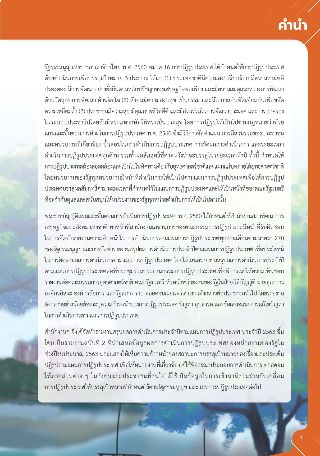 รายงานสรุปผลการดำเนินการตามแผนการปฏิรูปประเทศ ประจำปี 2563