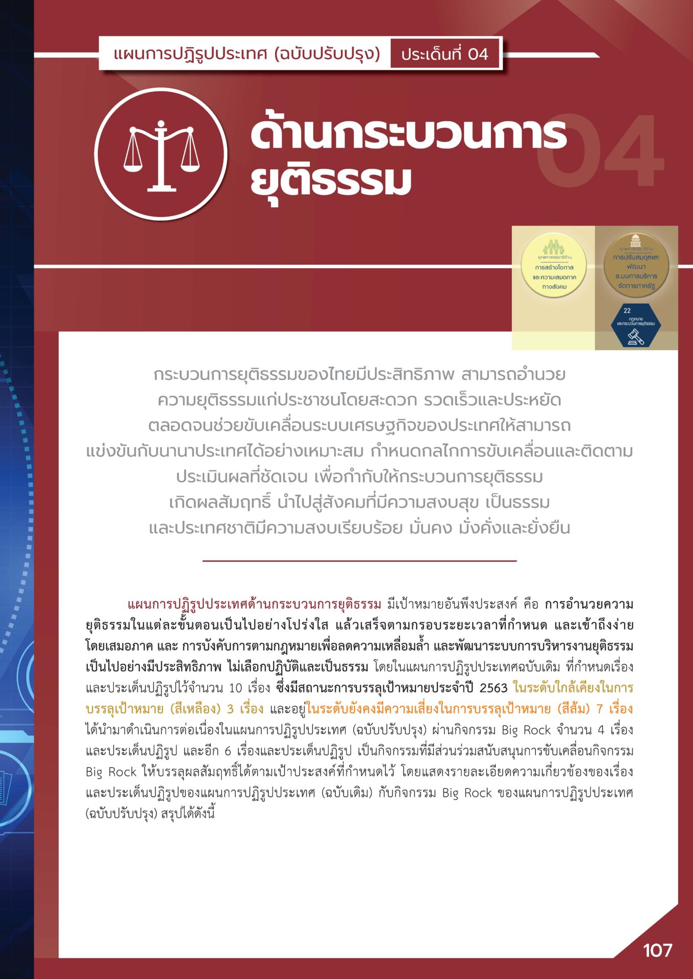 สรุปผลการดำเนินการของแผนการปฏิรูปประเทศ ประเด็นที่ 04 ด้านกระบวนการยุติธรรม
