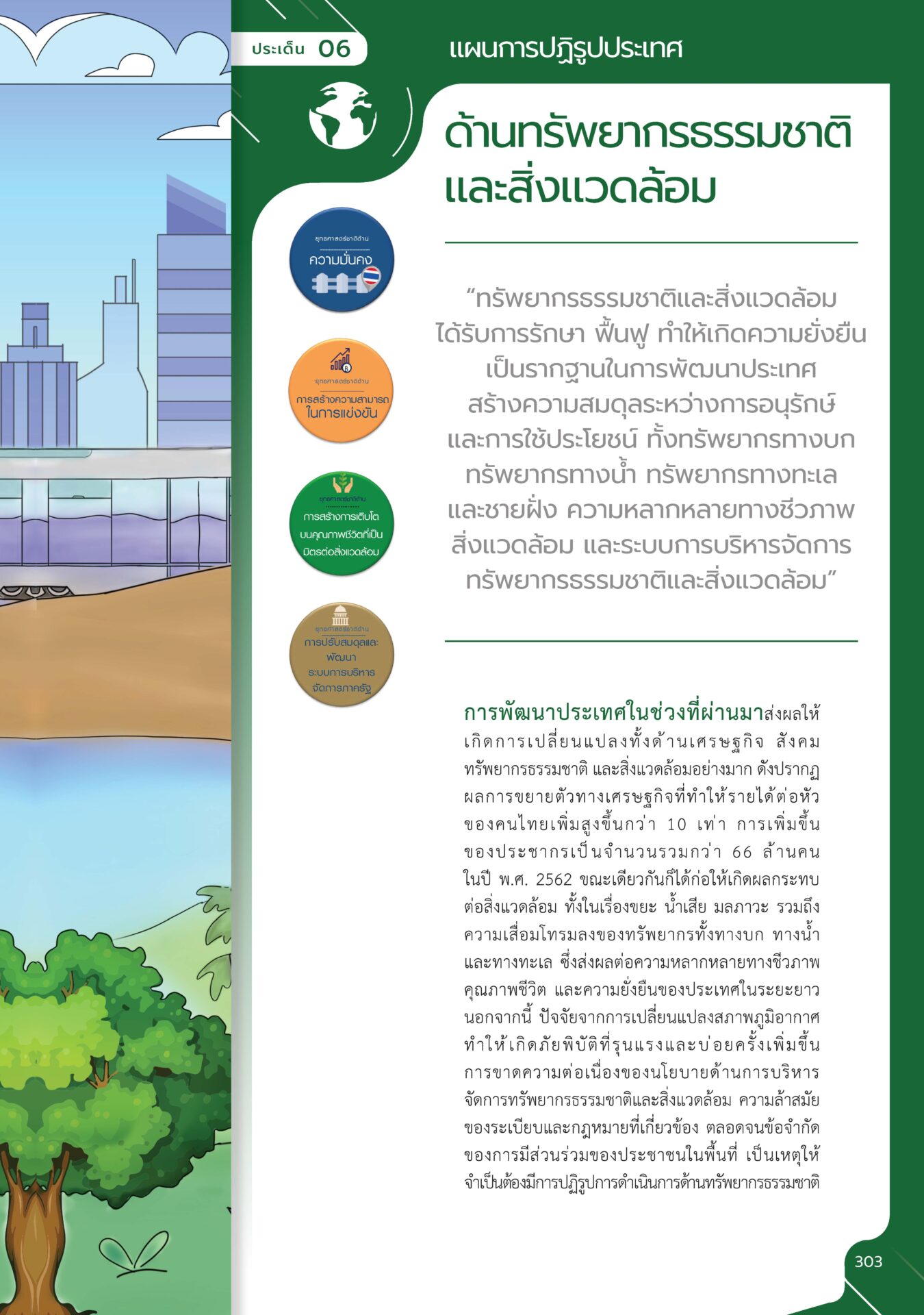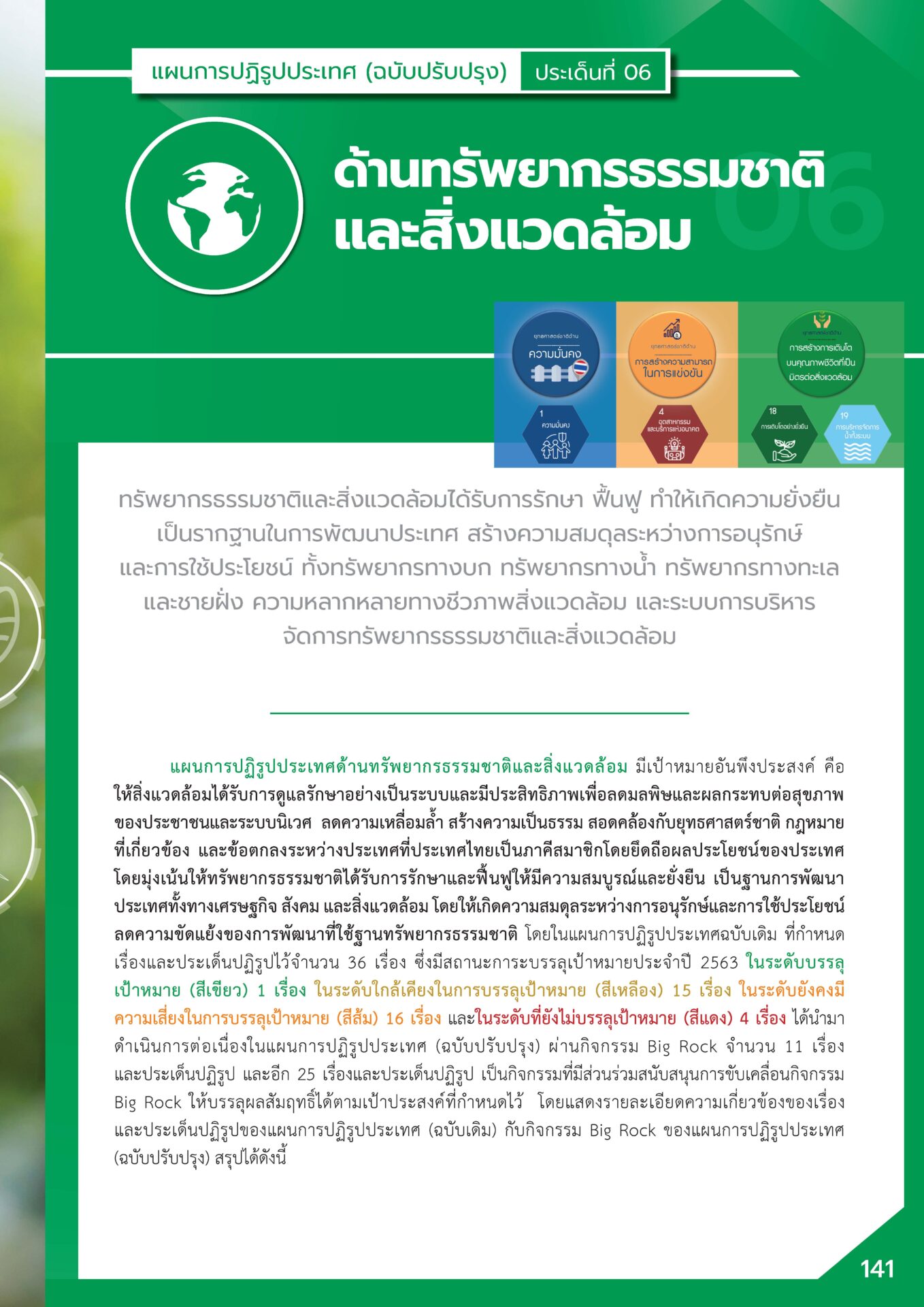 สรุปผลการดำเนินการของแผนการปฏิรูปประเทศ ประเด็นที่ 06 ด้านทรัพยากรธรรมชาติและสิ่งแวดล้อม