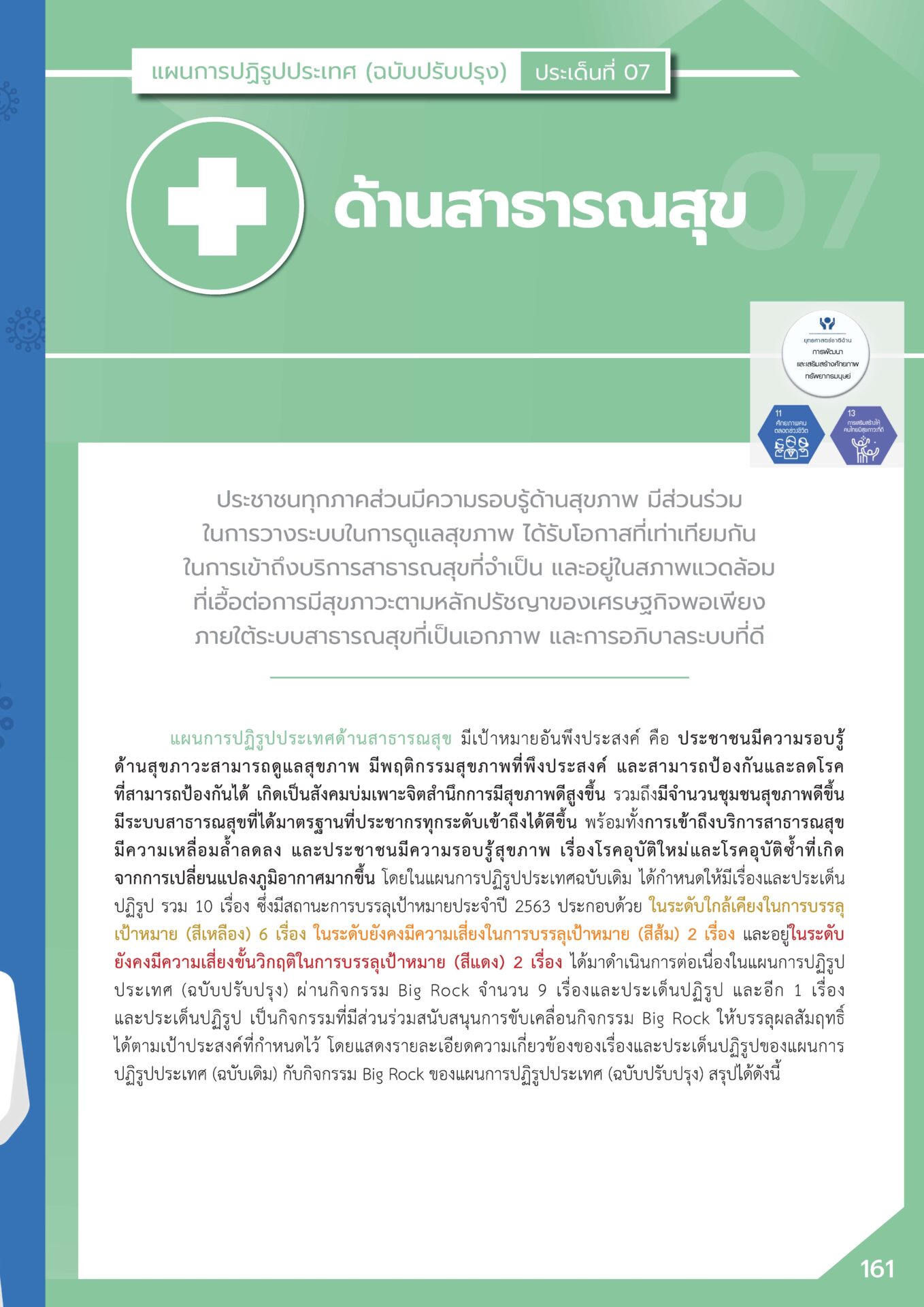 สรุปผลการดำเนินการของแผนการปฏิรูปประเทศ ประเด็นที่ 07 ด้านสาธารณสุข