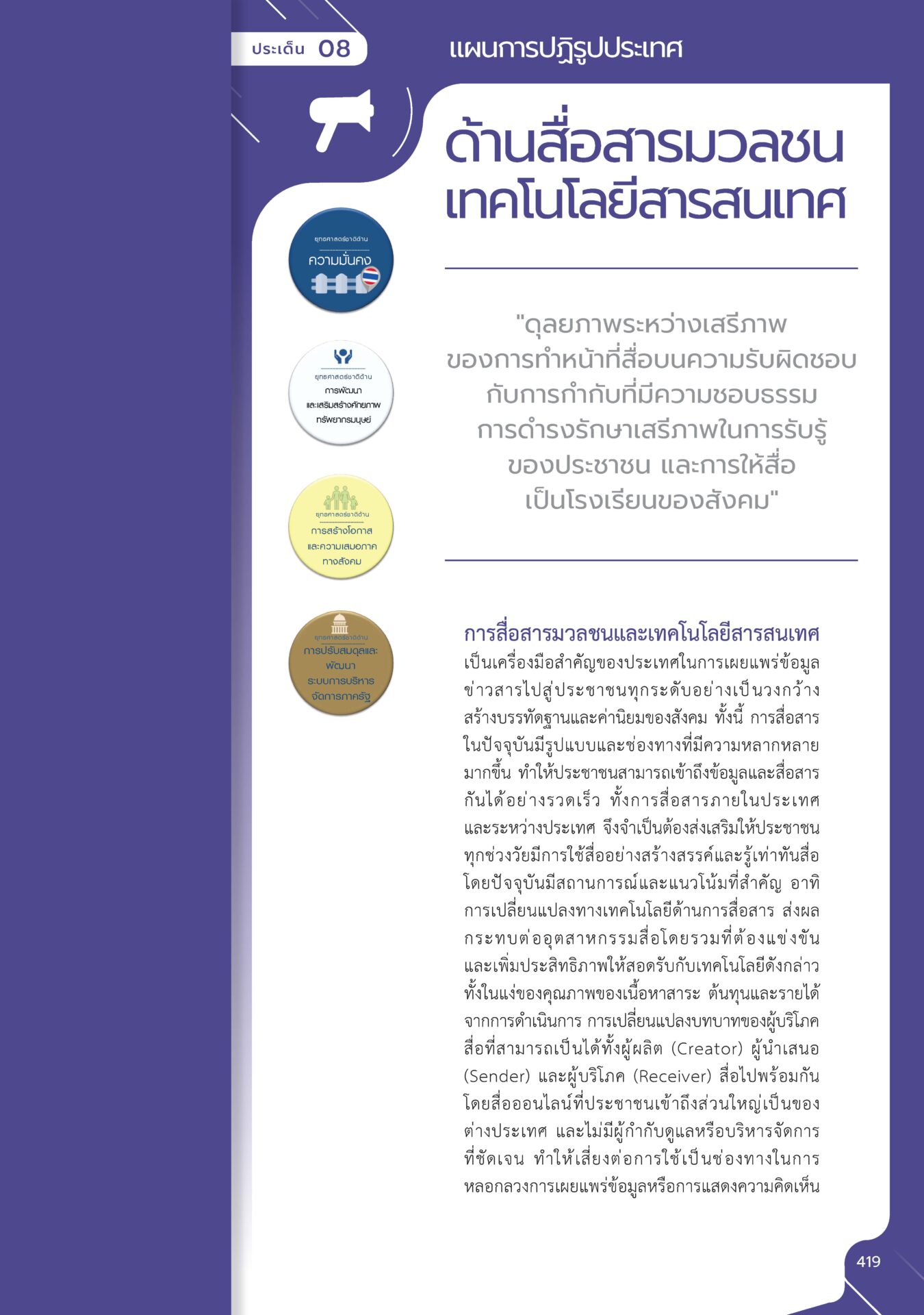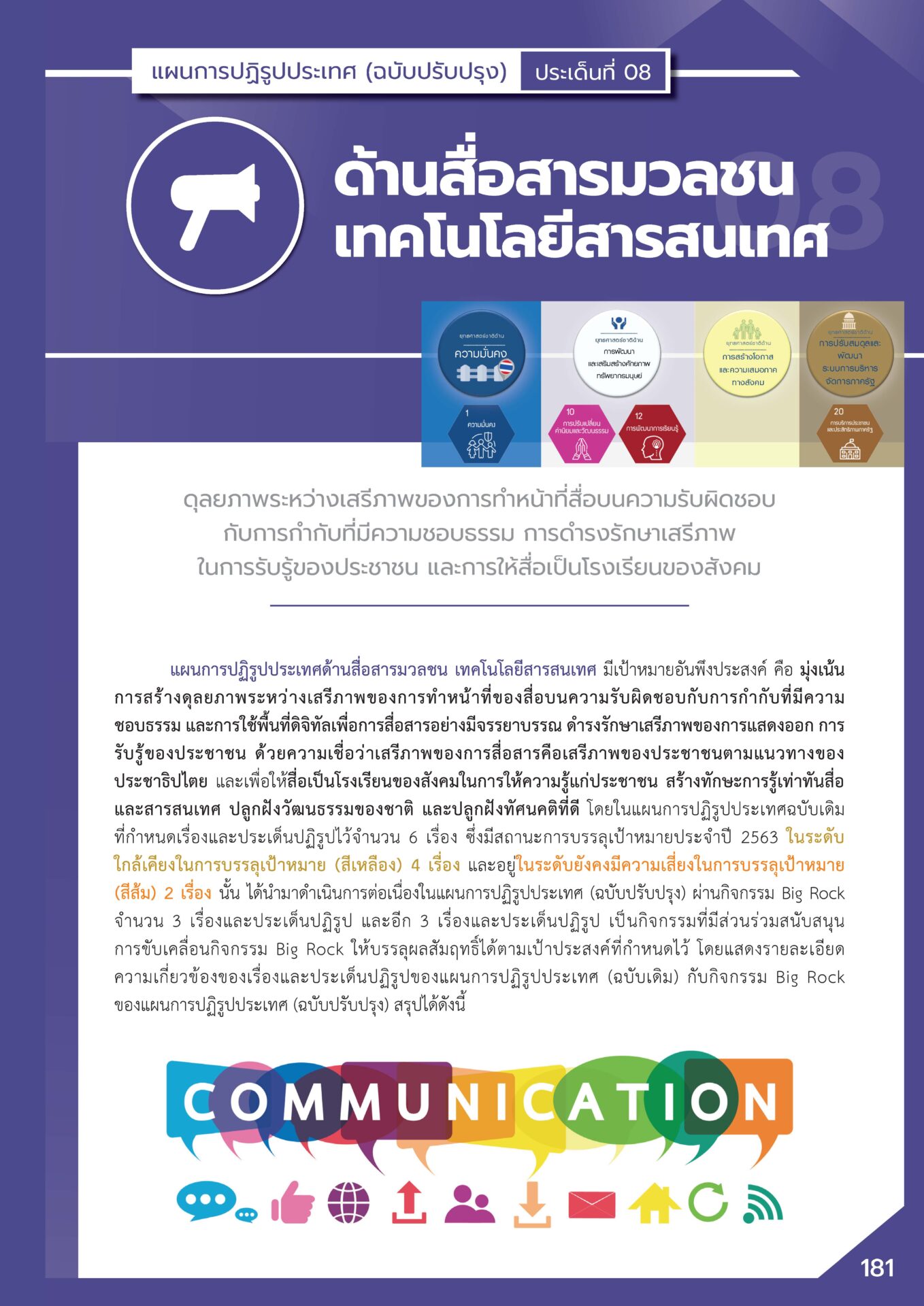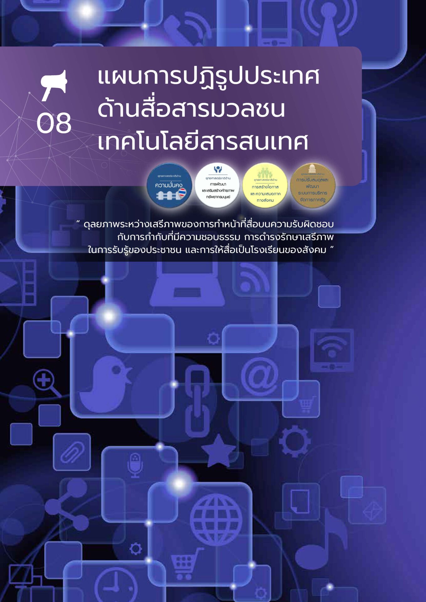 สรุปผลการดำเนินการของแผนการปฏิรูปประเทศ ประเด็นที่ 08 ด้านสื่อสารมวลชนเทคโนโลยีสารสนเทศ