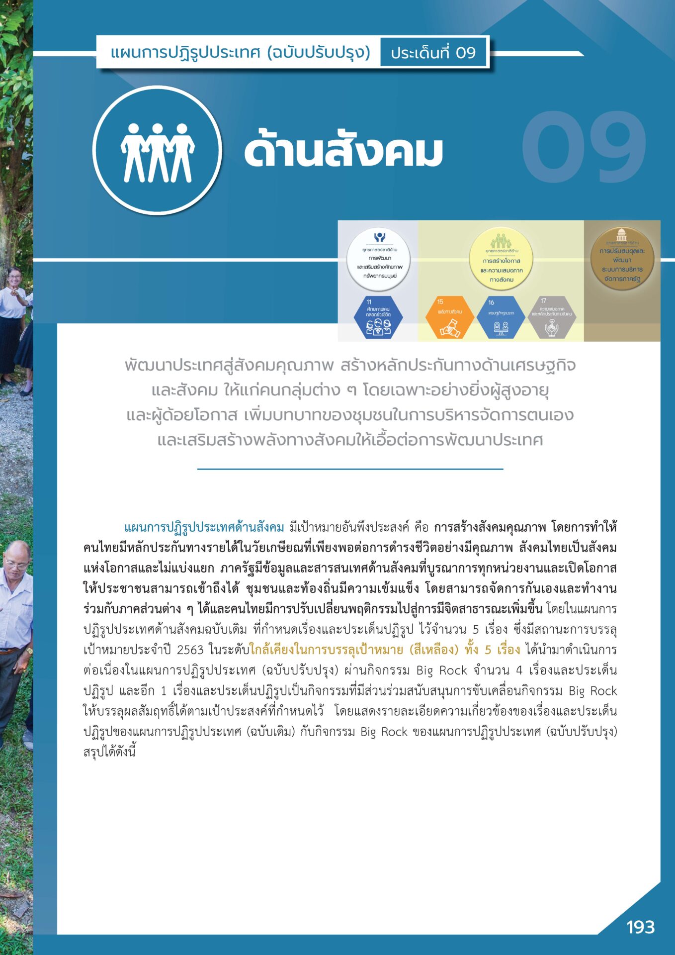 สรุปผลการดำเนินการของแผนการปฏิรูปประเทศ ประเด็นที่ 09 ด้านสังคม