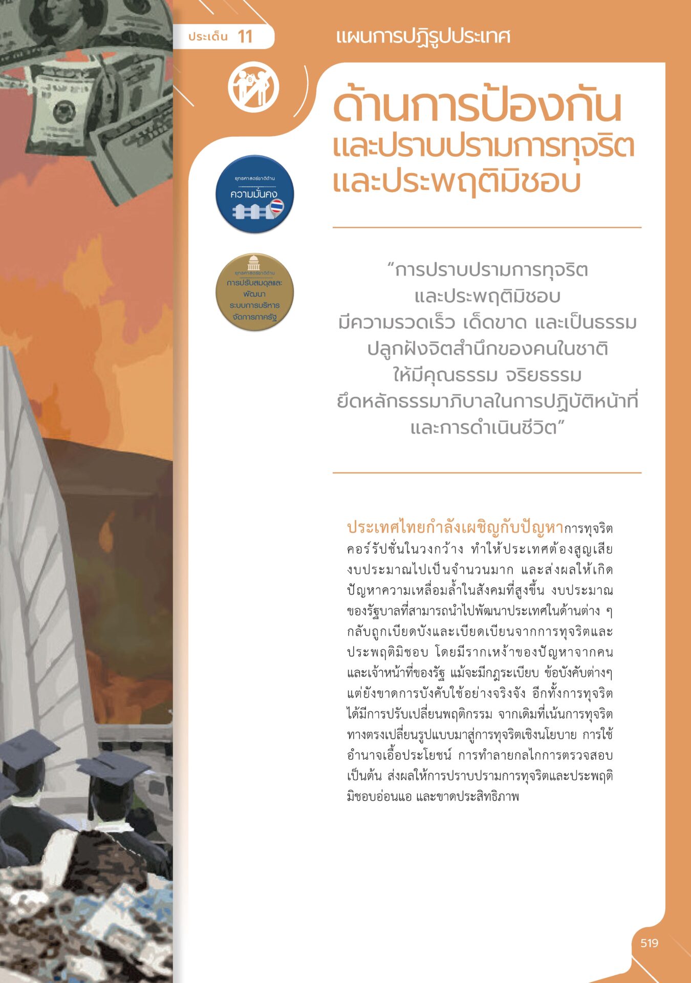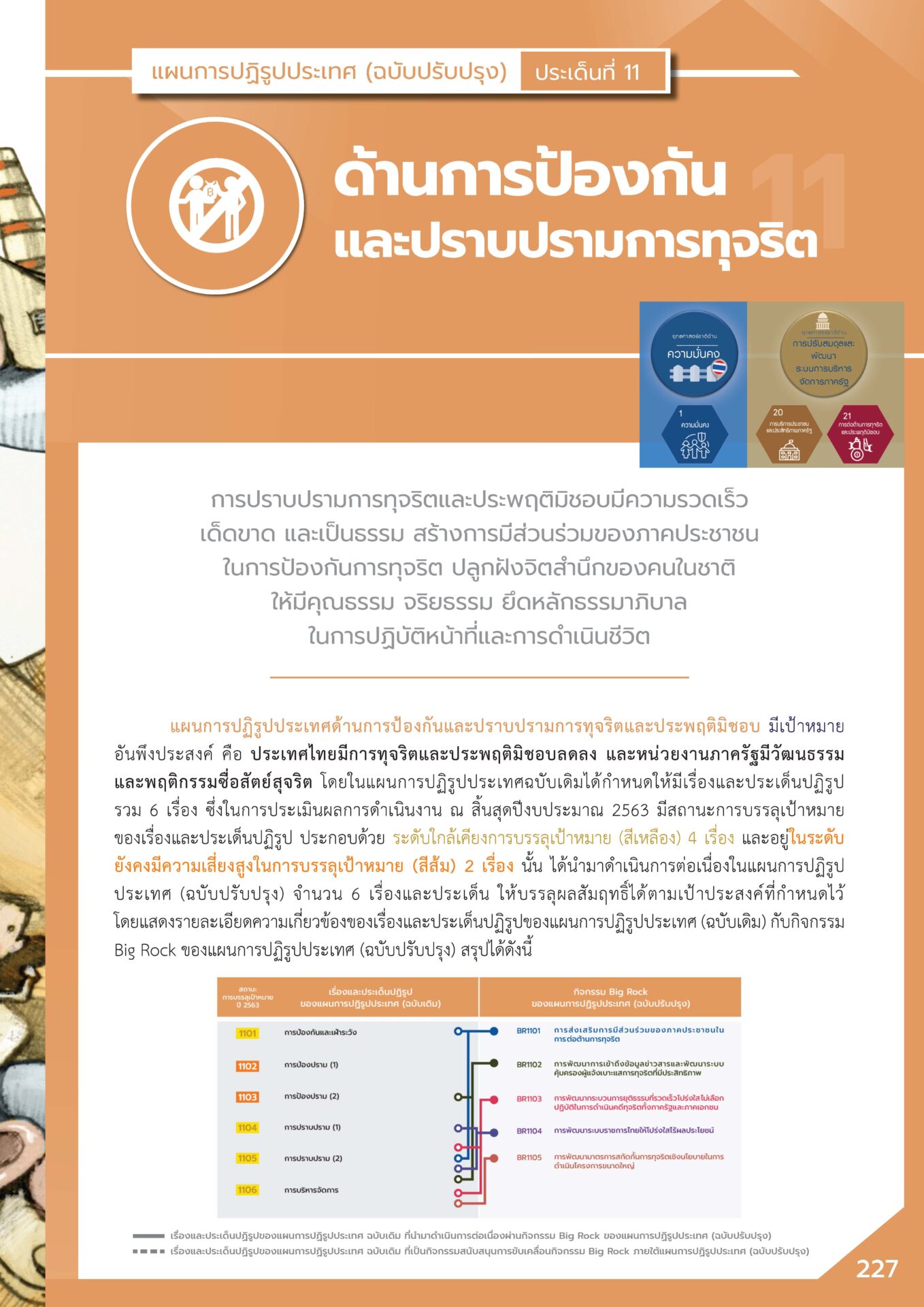 สรุปผลการดำเนินการของแผนการปฏิรูปประเทศ ประเด็นที่ 11 ด้านการป้องกันและปราบปรามทุจริตและประพฤติมิชอบ