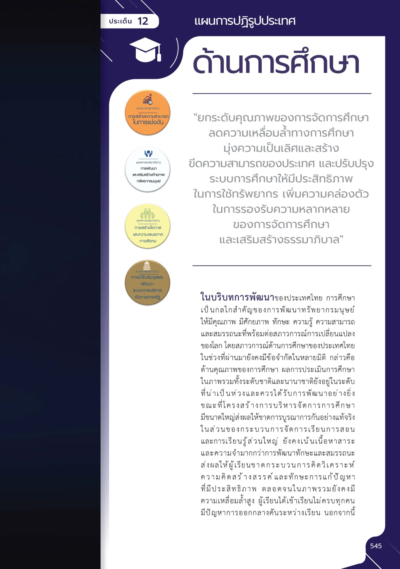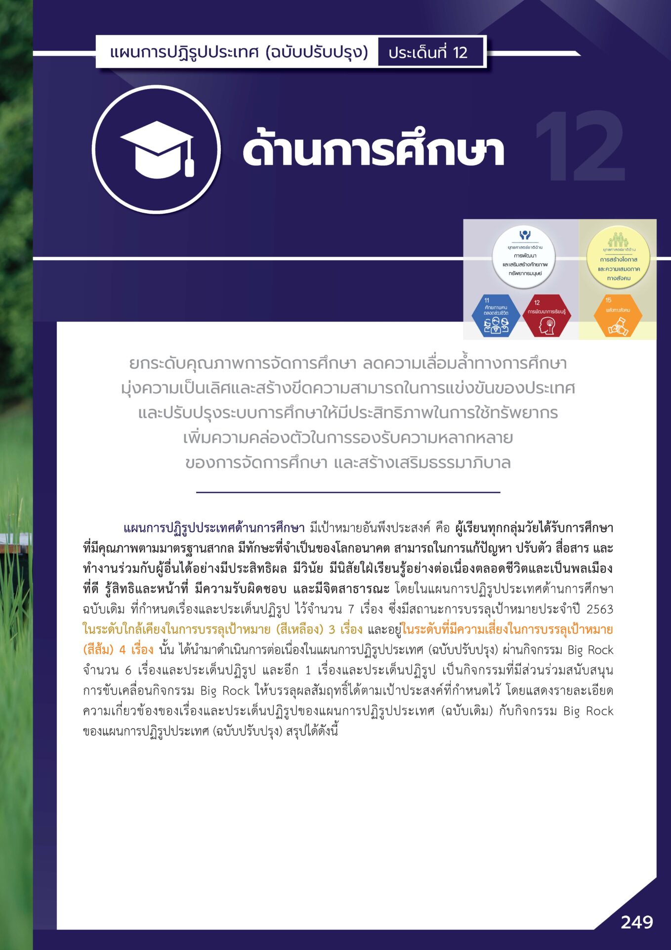สรุปผลการดำเนินการของแผนการปฏิรูปประเทศ ประเด็นที่ 12 ด้านการศึกษา