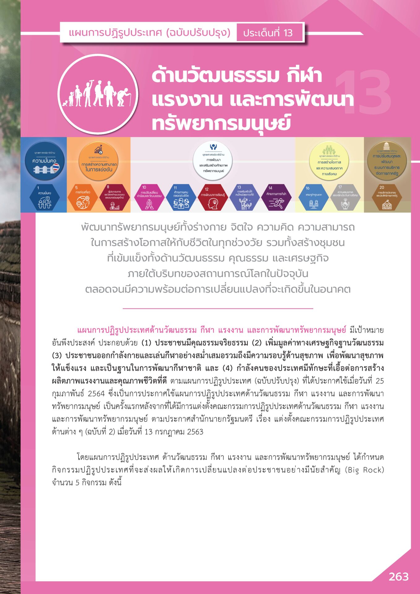 สรุปผลการดำเนินการของแผนการปฏิรูปประเทศ ประเด็นที่ 13 ด้านวัฒนธรรม กีฬา แรงงาน และการพัฒนาทรัพยากรมนุษย์