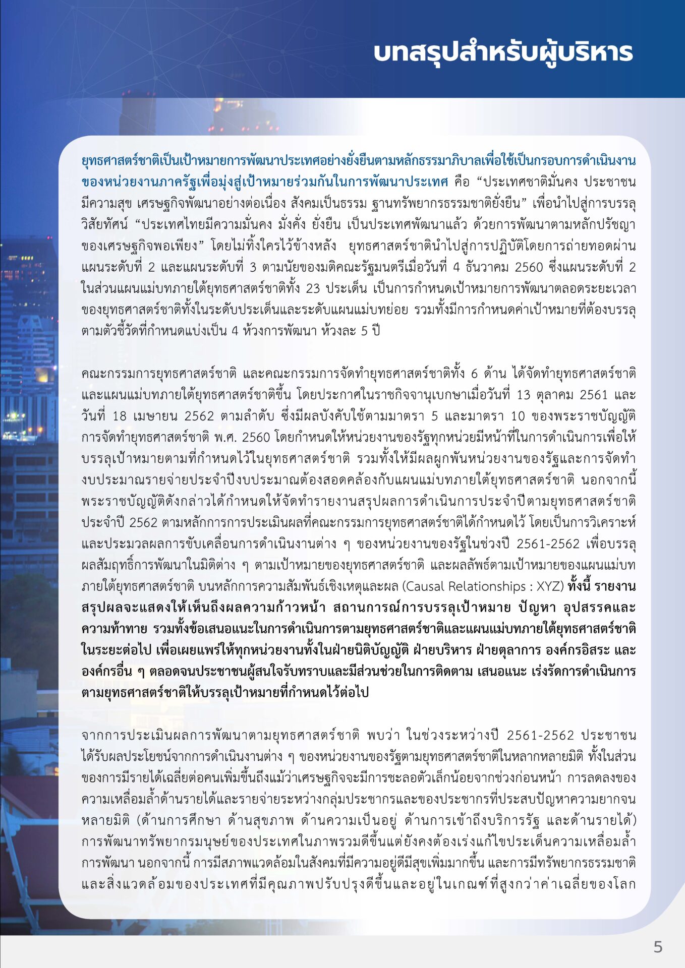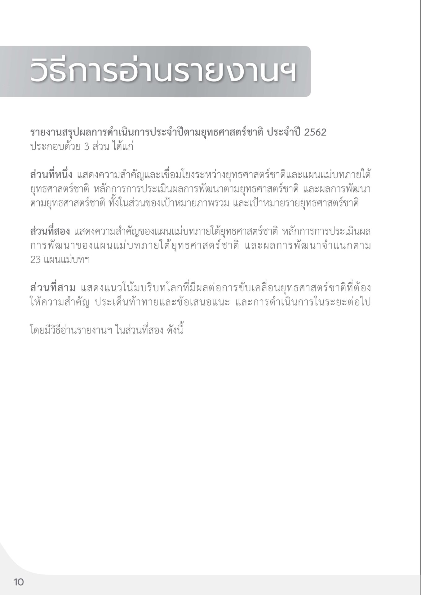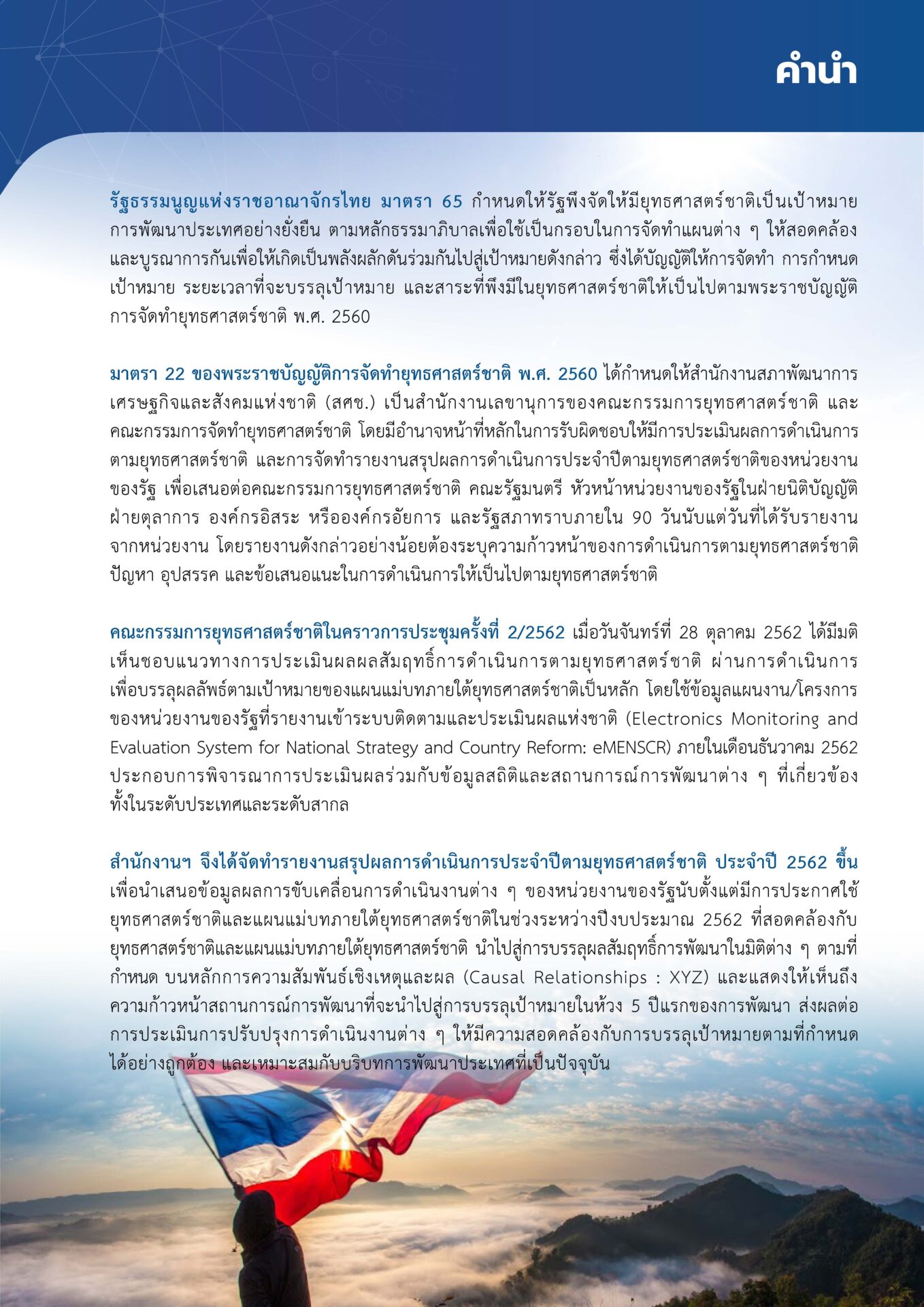 รายงานสรุปผลการดำเนินการตามยุทธศาสตร์ชาติ ประจำปี 2562