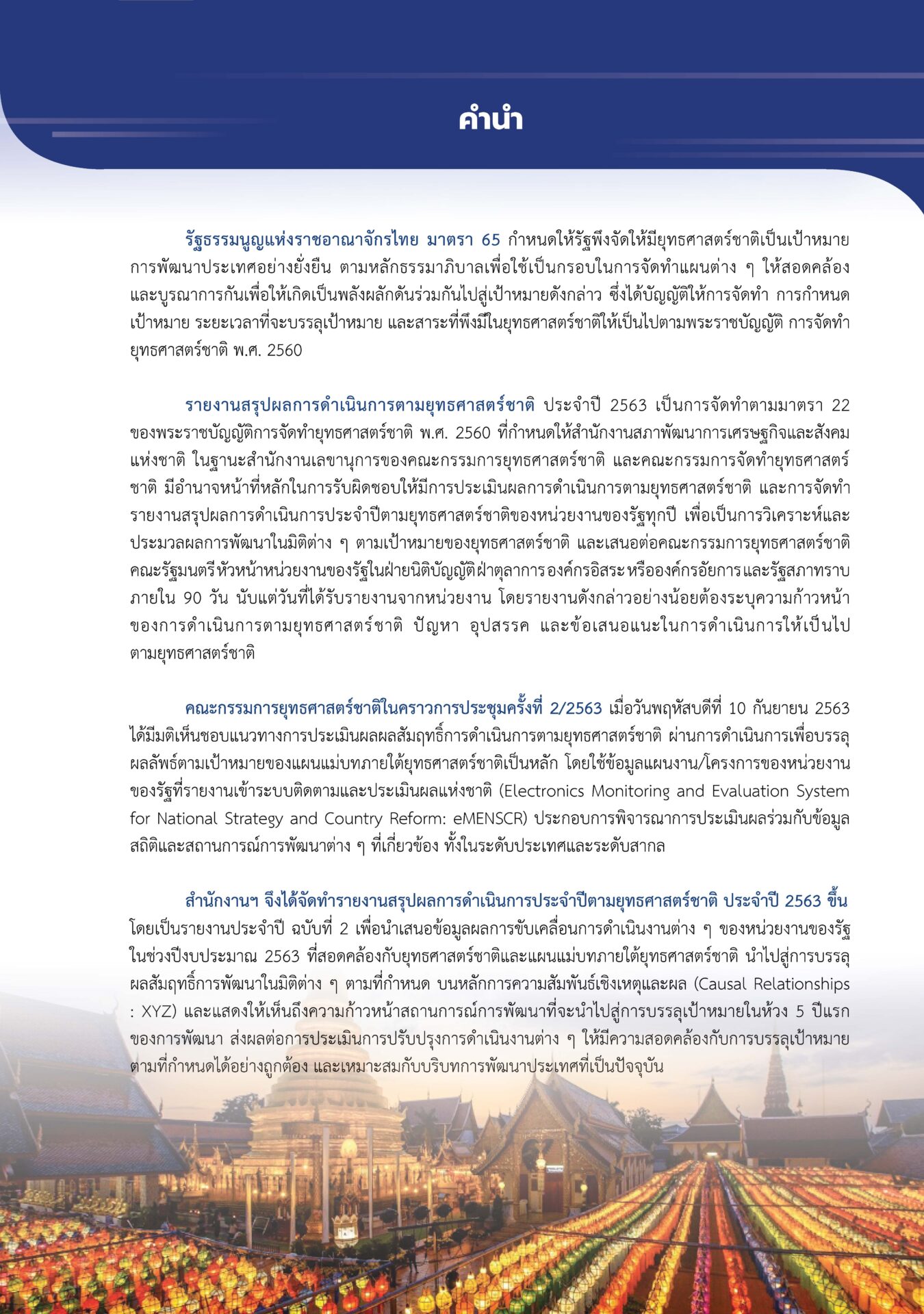 รายงานสรุปผลการดำเนินการตามยุทธศาสตร์ชาติ ประจำปี 2563