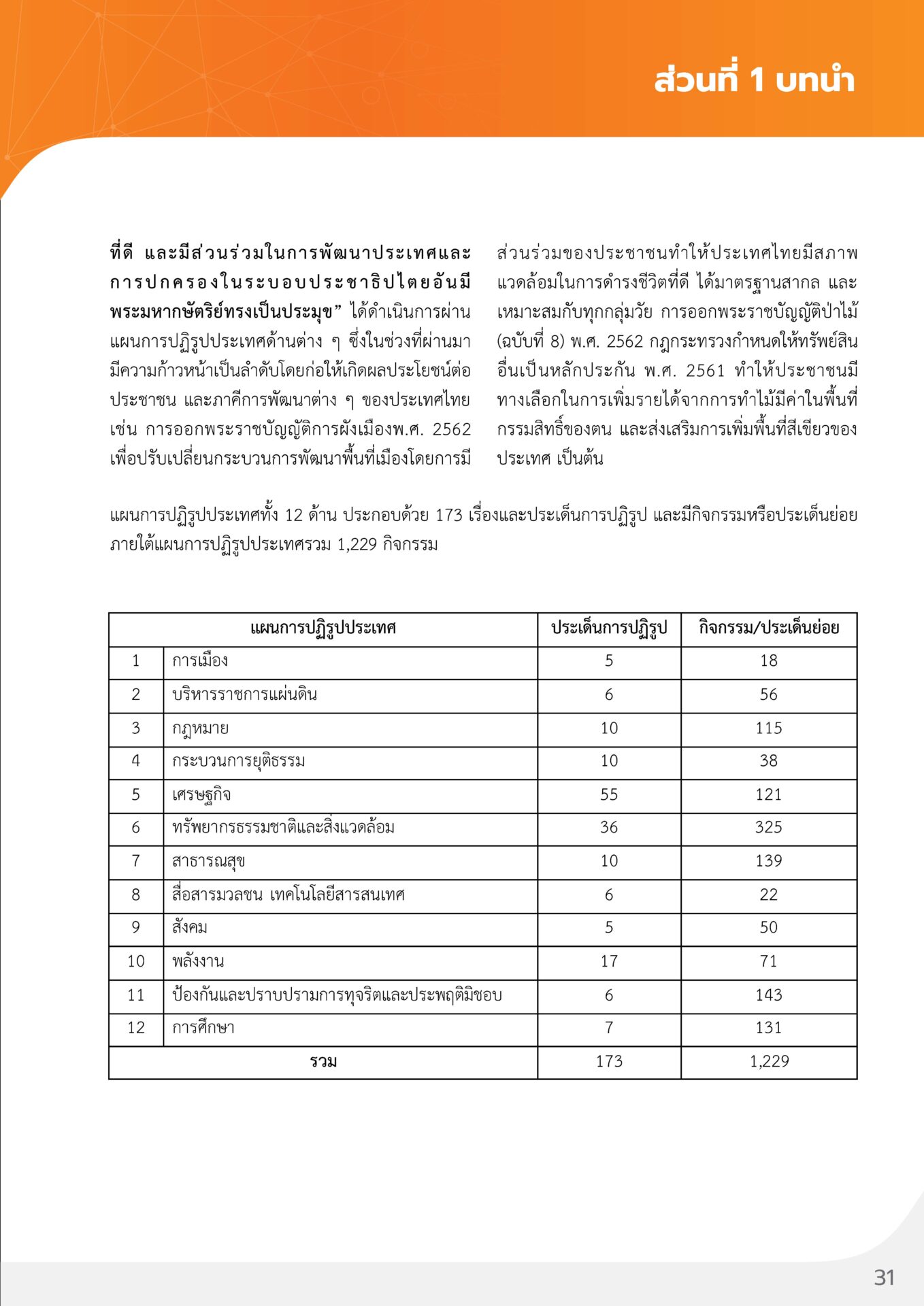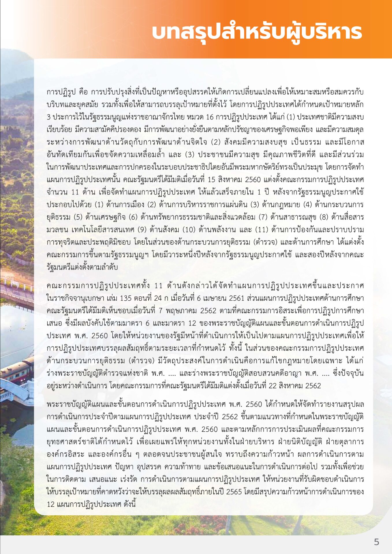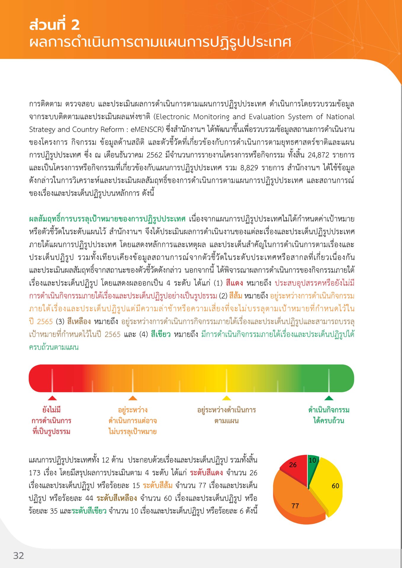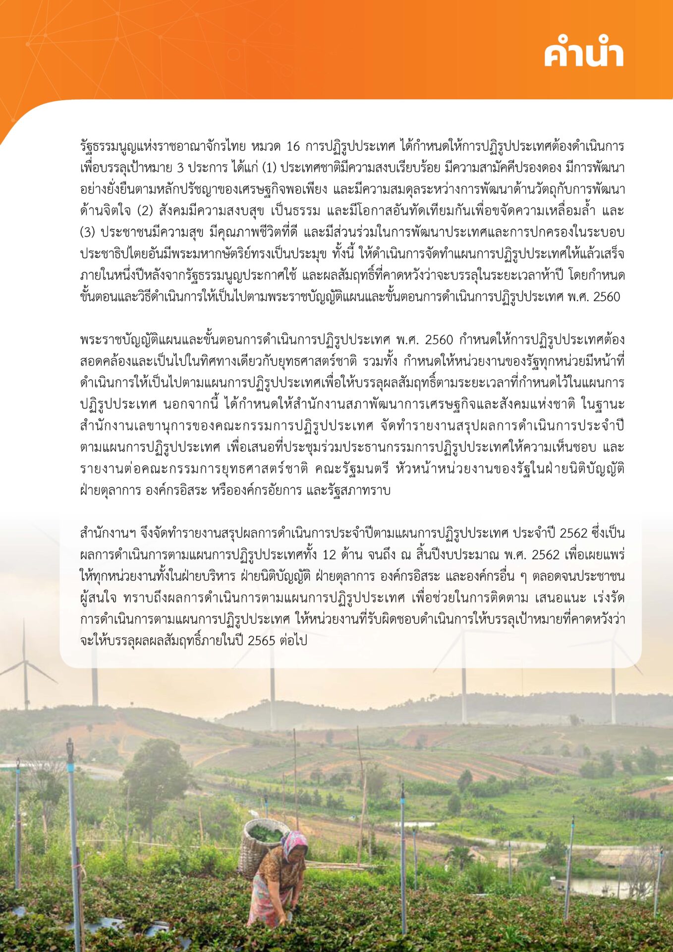 รายงานสรุปผลการดำเนินการตามแผนการปฏิรูปประเทศ ประจำปี 2562