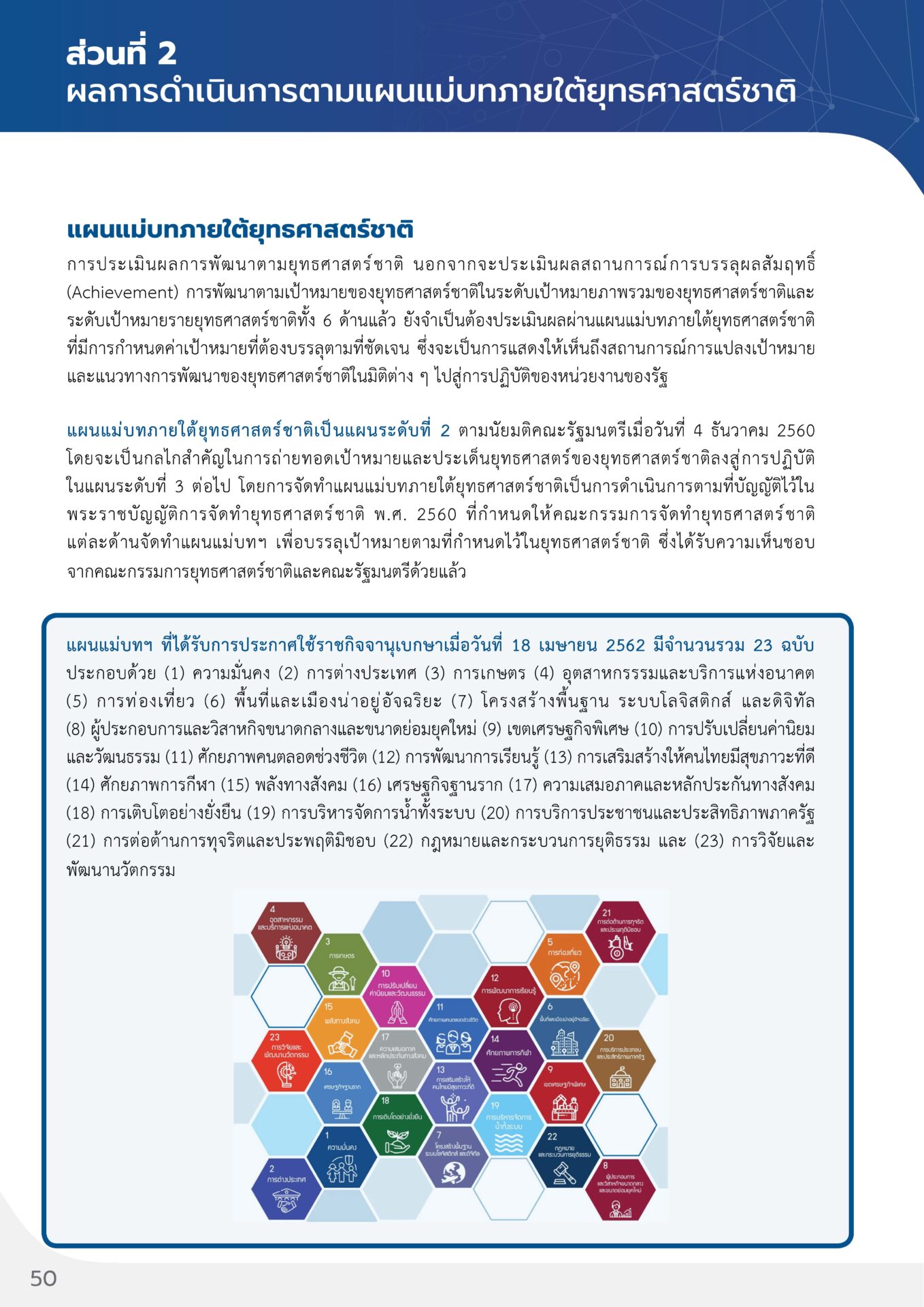 ส่วนที่ 2 ผลการดำเนินการตามยุทธศาสตร์ชาติ และแผนแม่บทภายใต้ยุทธศาสตร์ชาติ