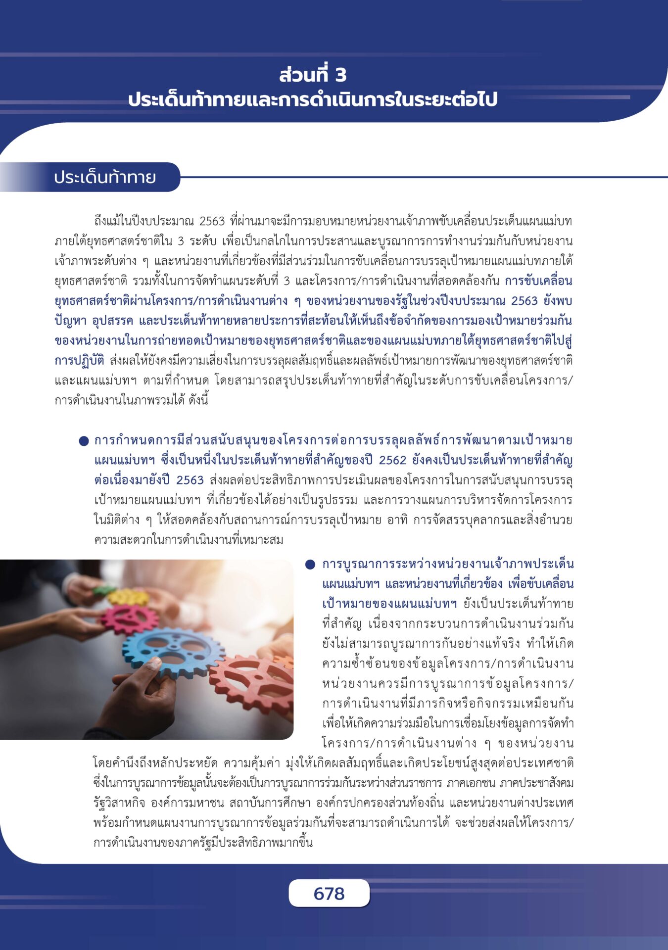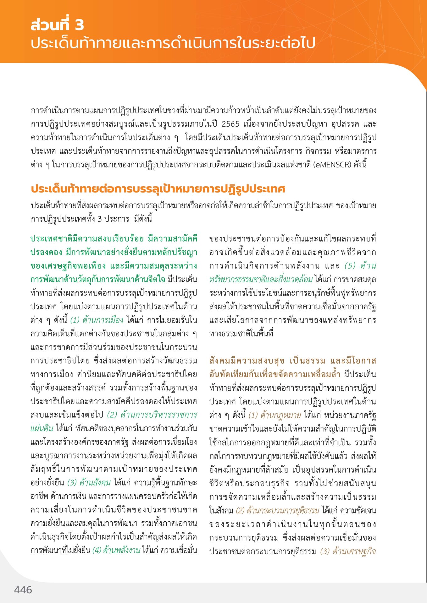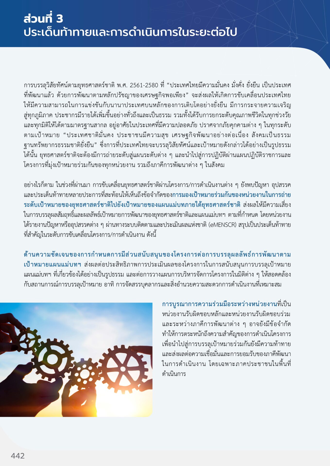 ส่วนที่ 3 ประเด็นท้าทาย และการดำเนินการต่อไป เพื่อให้ผลสัมฤทธิ์เกิดความยั่งยืน