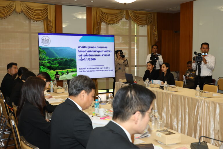 เมื่อวันที่ 30 มีนาคม 2569 มีการประชุมคณะกรรมการโครงการพัฒนาคุณภาพชีวิตอย่างยั่งยืนตามพระราชดำริ ครั้งที่ 1/2569 ณ ห้องประชุมชั้น 1 สำนักงานองคมนตรี ซึ่งมี พลเอก ประยุทธ์ จันทร์โอชา องคมนตรี เป็นประธาน พร้อมด้วยองคมนตรี ได้แก่ นายอำพน กิตติอำพน พลเอก เฉลิมชัย สิทธิสาท และพลอากาศเอก จอม รุ่งสว่าง เป็นรองประธาน หัวหน้าส่วนราชการที่เกี่ยวข้องร่วมเป็นกรรมการ และมีนายดนุชา พิชยนันท์ เลขาธิการสภาพัฒนาการเศรษฐกิจและสังคมแห่งชาติ ทำหน้าที่ฝ่ายเลขานุการ พร้อมด้วย นายณฐพงศ์ วรรณรัตน์ รองเลขาธิการสภาพัฒนาการเศรษฐกิจและสังคมแห่งชาติ เข้าร่วมการประชุมดังกล่าว เพื่อพิจารณากรอบนโยบายและแนวทางการดำเนินงาน เป้าหมายการพัฒนาของพื้นที่ดำเนินโครงการฯ และแผนการดำเนินงานของโครงการพัฒนาคุณภาพชีวิตฯ
