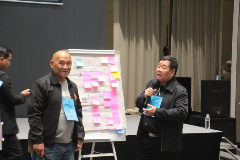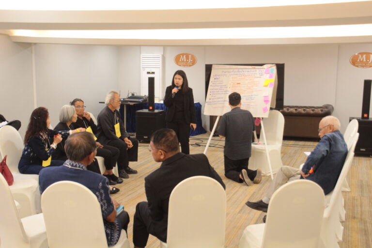 นอกจากนี้ รองเลขาธิการฯ ยกตัวอย่างกระบวนการทำงานแบบภาคีเครือข่ายของวุฒิอาสาฯ ภาคตะวันออกของนายครรชิต เข็มเฉลิม กรรมการ มพท. และวุฒิอาสาฯ จังหวัดฉะเชิงเทรา ที่มีการกำหนดประเด็นและเป้าหมายการพัฒนาร่วมกัน วิเคราะห์และเชื่อมโยงประเด็นกับภาคีเครือข่ายในจังหวัด ก่อนจะขยายผลไปสู่การร่วมทำงานกับจังหวัดอื่นในภาคตะวันออก บนฐานการใช้ทรัพยากรร่วมกัน โดยใช้กระบวนการขับเคลื่อน SDG Lab ที่มีการแลกเปลี่ยนประสบการณ์การทำงานร่วมกันอย่างต่อเนื่องผ่านแพลตฟอร์มตะวันออกฟอรั่ม เป็นการทำงานเชิงยุทธศาสตร์ยกระดับการทำงานจากระดับจังหวัดขึ้นเป็นระดับภาค มุ่งสู่เป้าหมายเดียวกัน คือ “ตะวันออกวิถีแห่งความสุข” ซึ่งปัจจุบันขยายผลสู่การทำงานในจังหวัดลุ่มแม่น้ำแม่กลอง และตัวอย่างการจัดการปัญหาช้างป่าด้วยผังตำบล ของนายบัญชา เทียมครบุรี วุฒิอาสาฯ จังหวัดสระแก้ว เป็นการใช้กระบวนการขับเคลื่อน SDG Lab ในการแก้ไขปัญหาด้วยการพัฒนาแนวทางการทำงานผ่านฐานข้อมูล เน้นกระบวนการมีส่วนร่วมของชุมชนร่วมกับภาคีเครือข่ายทุกภาคส่วนอย่างแท้จริง นำไปสู่การสร้างฐานข้อมูลผังตำบล ที่ใช้เป็นเครื่องมือกำหนดแนวทางการแก้ไขปัญหาช้างป่าในพื้นที่ได้อย่างมีประสิทธิภาพ นอกจากนี้ นายเอ็นนู ซื่อสุวรรณ กรรมการ มพท. ให้ข้อเสนอแนะในการขับเคลื่อนงานของวุฒิอาสาฯ โดยชี้ให้เห็นถึงความสำคัญของการเชื่อมโยงการทำงานร่วมกับภาคีเครือข่าย ทั้งท้องถิ่น ท้องที่ และสถาบันการศึกษา ทำให้เกิดการสานพลังในการร่วมคิด ร่วมวางแผน และทำงานร่วมกัน ที่นำไปสู่การแก้ไขปัญหาในชุมชน สังคมได้อย่างมีประสิทธิภาพ นอกจากนี้ ควรเน้นการพัฒนาคุณภาพคน ซึ่งถือเป็นหัวใจสำคัญของการพัฒนาที่ยั่งยืน รวมทั้งให้ความเห็นเพิ่มเติมว่า ควรเพิ่มจำนวนวุฒิอาสาฯ โดยเฉพาะในจังหวัดที่มีจำนวนวุฒิอาสาฯ น้อย เพื่อให้เกิดพลังในการขับเคลื่อนงานในระยะต่อไป