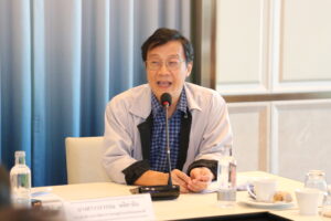 นางสาววรวรรณ พลิคามิน รองเลขาธิการสภาพัฒนาการเศรษฐกิจและสังคมแห่งชาติ เป็นประธานกล่าวเปิดการประชุม และนำเสนอศักยภาพของภาคประชาสังคมในการเป็นผู้เชื่อมโยงในระบบนิเวศเพื่อลดความเหลื่อมล้ำ(Ecosystemizer) ตั้งแต่ระดับตำบลที่เป็นหน่วยเล็กที่สุด โดยภาคประชาสังคมหรือ “ท้องทุ่ง” ซึ่งครอบคลุมองค์กรพัฒนาเอกชน (NGOs) องค์กรชุมชนและอาสาสมัครในพื้นที่ รวมทั้งกลุ่มพลังพลเมือง (Active Citizens) มีกระบวนทัศน์การทำงานที่มุ่งเน้นการเชื่อมประสานการทำงานระหว่างท้องที่ (หน่วยงานรัฐในพื้นที่) ท้องถิ่น (อปท.) เพื่อจัดบริการทางสังคมให้เข้าถึงกลุ่มเปราะบางที่มีความต้องการเฉพาะ ซึ่งภาครัฐไม่สามารถให้บริการได้อย่างทั่วถึง อีกทั้งยังทำหน้าที่เชื่อมโยงการขับเคลื่อนนวัตกรรมหรือข้อเสนอเชิงนโยบายตั้งแต่ระดับตำบลไปสู่ระดับจังหวัดและต่อเนื่องถึงระดับประเทศ โดยเป็นการขับเคลื่อนตามแนวทางหมุดหมายที่ 13 ไทยมีภาครัฐที่ทันสมัย มีประสิทธิภาพ และตอบโจทย์ประชาชน ภายใต้แผนพัฒนาเศรษฐกิจและสังคมแห่งชาติฉบับที่ 13 ทั้งนี้ รองเลขาธิการฯ ยังชี้ให้เห็นถึงโอกาสทางนโยบายที่เอื้อให้ภาคประชาสังคมมาหนุนเสริมภาครัฐ ได้แก่ (1) ร่าง พ.ร.บ. ยกระดับการบริหารราชการให้ทันสมัย พ.ศ. …. เปิดโอกาสให้หน่วยงานรัฐบริหารงานแบบเครือข่ายกับภาคประชาสังคมในการให้บริการสาธารณะในรูปแบบต่าง ๆ ตั้งแต่การทำงานร่วมกันโดยมีบันทึกความร่วมมือที่ชัดเจน การอุดหนุนงบประมาณหรือทรัพยากร ครุภัณฑ์ หรือให้ใช้สถานที่ หรือระบบเทคโนโลยีสารสนเทศสำหรับภาคประชาสังคมจัดบริการสาธารณะ การโอนภารกิจให้ประชาสังคมทำแทน จนถึงการเปิดโอกาสให้ประชาสังคมแข่งขันกับรัฐในการจัดบริการสาธารณะ (2) การปรับปรุงกฎหมายสนับสนุนและพัฒนาศักยภาพของภาคประชาสังคม ได้แก่ ระเบียบสำนักนายกรัฐมนตรีว่าด้วยการส่งเสริมและพัฒนาองค์กรภาคประชาสังคม พ.ศ. 2558 (3) การดำเนินการร่วมกับองค์กรปกครองส่วนท้องถิ่น (อปท.) เพื่อบรรลุตัวชี้วัดประเมินประสิทธิภาพของ อปท. (Local Performance Assessment : LPA) โดยเฉพาะตัวชี้วัดด้านที่ 4 ด้านบริการสาธารณะเพื่อเข้าถึงบริการทางสุขภาพของผู้สูงอายุ และการประเมิน อปท.ศักยภาพสูง (HPA) ซึ่งมีตัวชี้วัดด้านการจัดทำนวัตกรรมในการปรับปรุงและออกแบบการให้บริการให้สามารถตอบสนองปัญหาและความต้องการของผู้รับบริการและผู้มีส่วนได้ส่วนเสีย และ (4) พระราชกฤษฎีกาว่าด้วยการบริหารงานเชิงพื้นที่แบบบูรณาการ พ.ศ. 2565 ที่กำหนดให้มีคณะกรรมการบริหารงานจังหวัดแบบบูรณาการ (ก.บ.จ.) โดยมีสัดส่วนผู้แทนจากภาคประชาสังคมจังหวัดละ 4-12 คน เ
