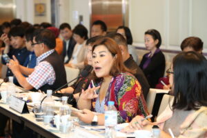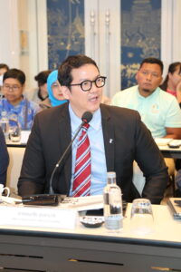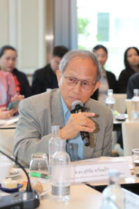 จากนั้นเป็นช่วงการอภิปราย/แลกเปลี่ยนความเห็น โดยมี นายวันชัย บุญประชา นายกสมาคมส่งเสริมภาคประชาสังคม เป็นผู้ดำเนินการระดมความเห็น ผู้ร่วมประชุมได้มีประเด็นข้อคิดเห็นและข้อเสนอแนะที่สำคัญต่อการส่งเสริมให้ภาคประชาสังคมมาหนุนเสริมภาครัฐ แบ่งออกเป็น ข้อเสนอแนะต่อภาครัฐ ควรมีกลไกคณะกรรมการร่วมระหว่างรัฐกับภาคประชาสังคมสำหรับนำเสนอแผนงาน/โครงการที่จัดทำขึ้นโดยชุมชน/ประชาสังคม และเพิ่มสัดส่วนโครงการด้านพัฒนาคุณภาพชีวิตในแผนพัฒนาจังหวัด รวมทั้งปรับปรุงกระบวนการคัดสรรผู้แทนภาคประชาสังคมในคณะกรรมการบริหารงานจังหวัดแบบบูรณาการ (ก.บ.จ.) และคณะกรรมการนโยบายการบริหารงานเชิงพื้นที่แบบบูรณาการ (ก.น.บ.) ให้มาจากการคัดเลือกของภาคประชาสังคมในแต่ละจังหวัด และเปิดโอกาสให้ภาคประชาสังคมได้มีส่วนร่วมประเมินประสิทธิภาพการจัดบริการของ อปท. ตามตัวชี้วัดใน LPA นอกจากนี้ ควรกำหนดให้พื้นที่ชายแดนเป็นพื้นที่ยกระดับร่วมมือกับภาคประชาสังคม เพื่อจัดตั้งระบบช่วยเหลือฉุกเฉินสำหรับกลุ่มเปราะบางที่ได้รับผลกระทบจากปัญหาความไม่สงบในพื้นที่ ทั้งในกลุ่มผู้สูงอายุ เด็กและเยาวชน และกลุ่มผู้มีปัญหาสถานะทางทะเบียน ข้อเสนอแนะต่อภาคประชาสังคม ควรพัฒนากลไกการติดตามและประเมินผลลัพธ์การดำเนินงานอย่างเป็นระบบ โดยให้ความสำคัญทั้งในมิติเชิงปริมาณและเชิงคุณภาพ อาทิ การเปรียบเทียบต้นทุนต่อหน่วย (Unit Cost) ระหว่างการดำเนินงานของภาครัฐและภาคประชาสังคม หรือการประเมินผล SROI เพื่อสะท้อนให้เห็นประสิทธิผลด้านการใช้งบประมาณน้อยกว่าแต่ให้ผลสัมฤทธิ์ที่ลึกซึ้งกว่า และสร้างความเชื่อมั่นต่อภาครัฐในการร่วมมือหรือมอบหมายบทบาทเพิ่มขึ้นในอนาคต อีกทั้ง ภาคประชาสังคมควรสร้างคนรุ่นใหม่ในพื้นที่เพื่อสืบทอดแนวคิดและการทำงานด้านสังคมต่อไป