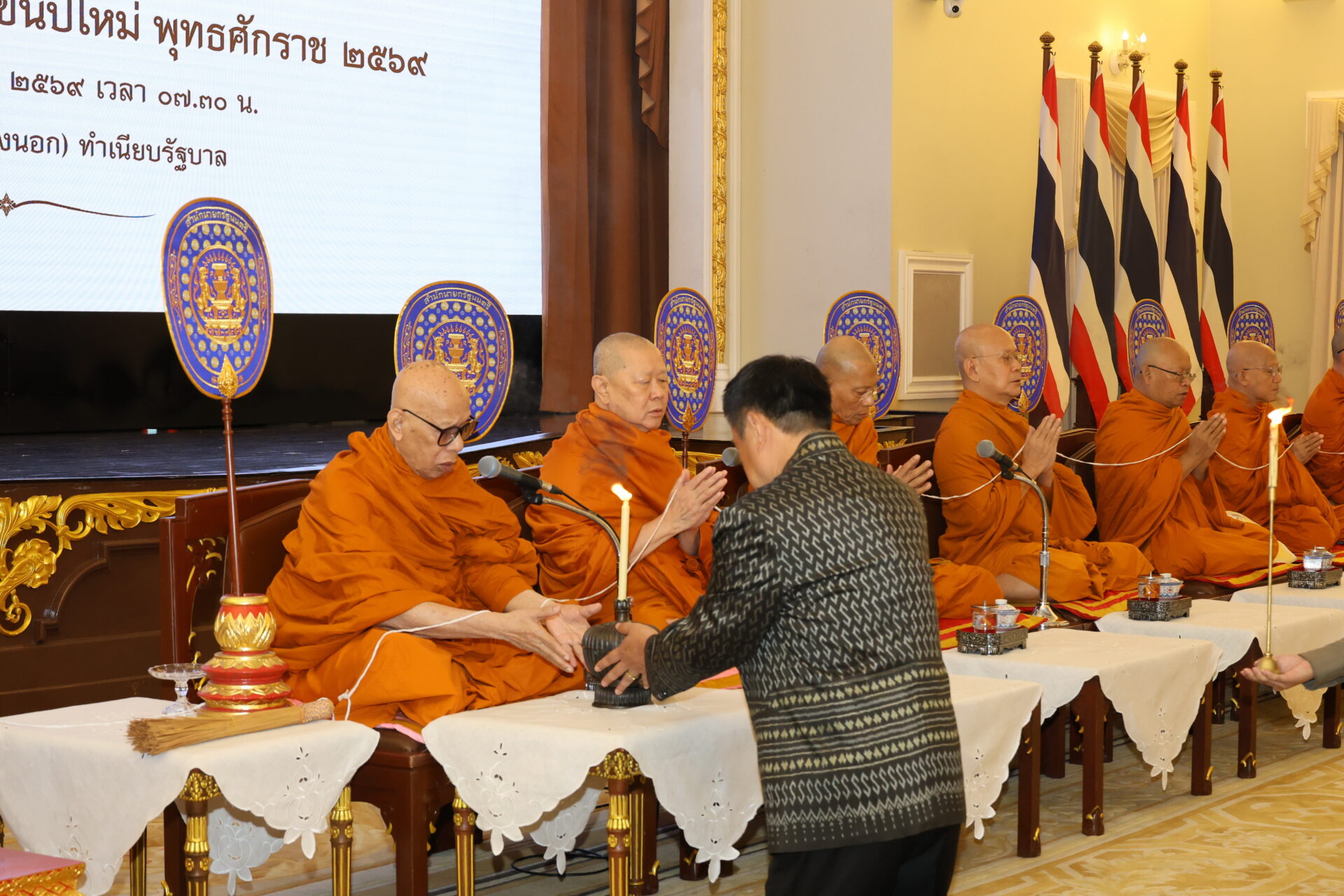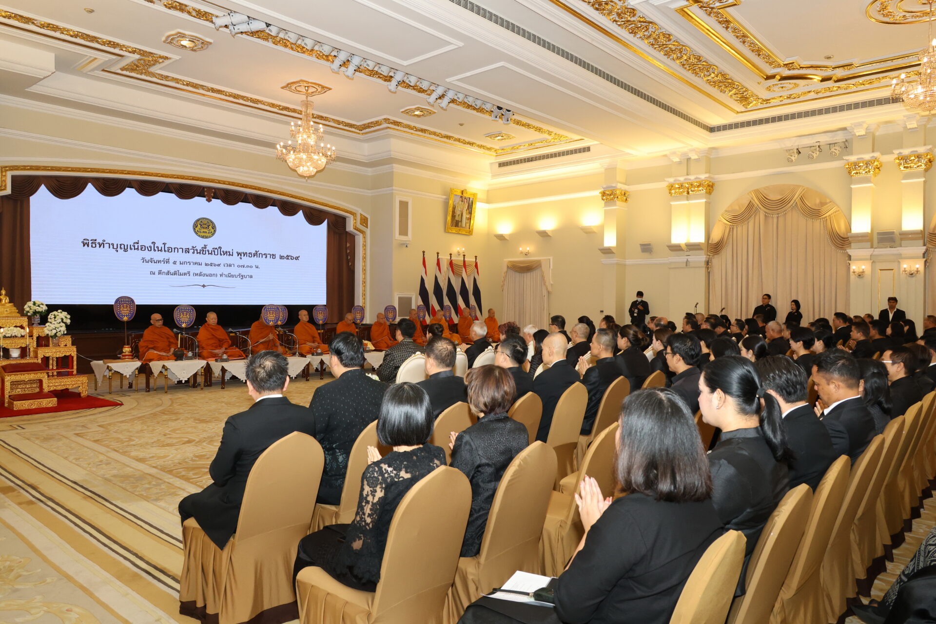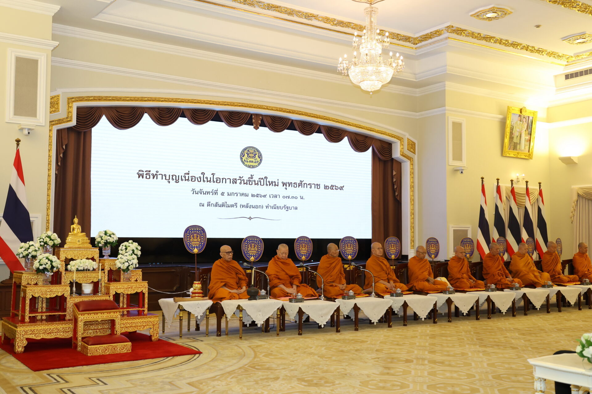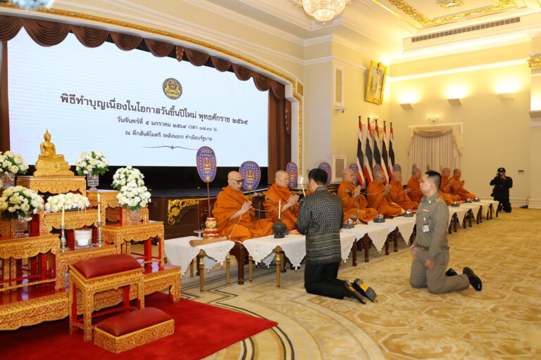 วันนี้ (5 มกราคม 2569) เวลา 07.00 น. นายดนุชา พิชยนันท์เลขาธิการสภาพัฒนาการเศรษฐกิจและสังคมแห่งชาติ (สศช.) เดินทางไปร่วมพิธีเจริญพระพุทธมนต์และพิธีทำบุญตักบาตรข้าวสารอาหารแห้งแด่พระสงฆ์ เนื่องในโอกาสวันขึ้นปีใหม่ พุทธศักราช 2569 เพื่อความเป็นสิริมงคลในการเริ่มต้นปฏิบัติราชการในปีพุทธศักราชใหม่ ณ ตึกสันติไมตรี (หลังนอก) และบริเวณสนามหญ้าหน้าตึกไทยคู่ฟ้า ทำเนียบรัฐบาล โดยมีคณะรัฐมนตรี ผู้บริหารหน่วยงานภาครัฐ และข้าราชการระดับสูง เข้าร่วมในพิธีอย่างพร้อมเพรียง