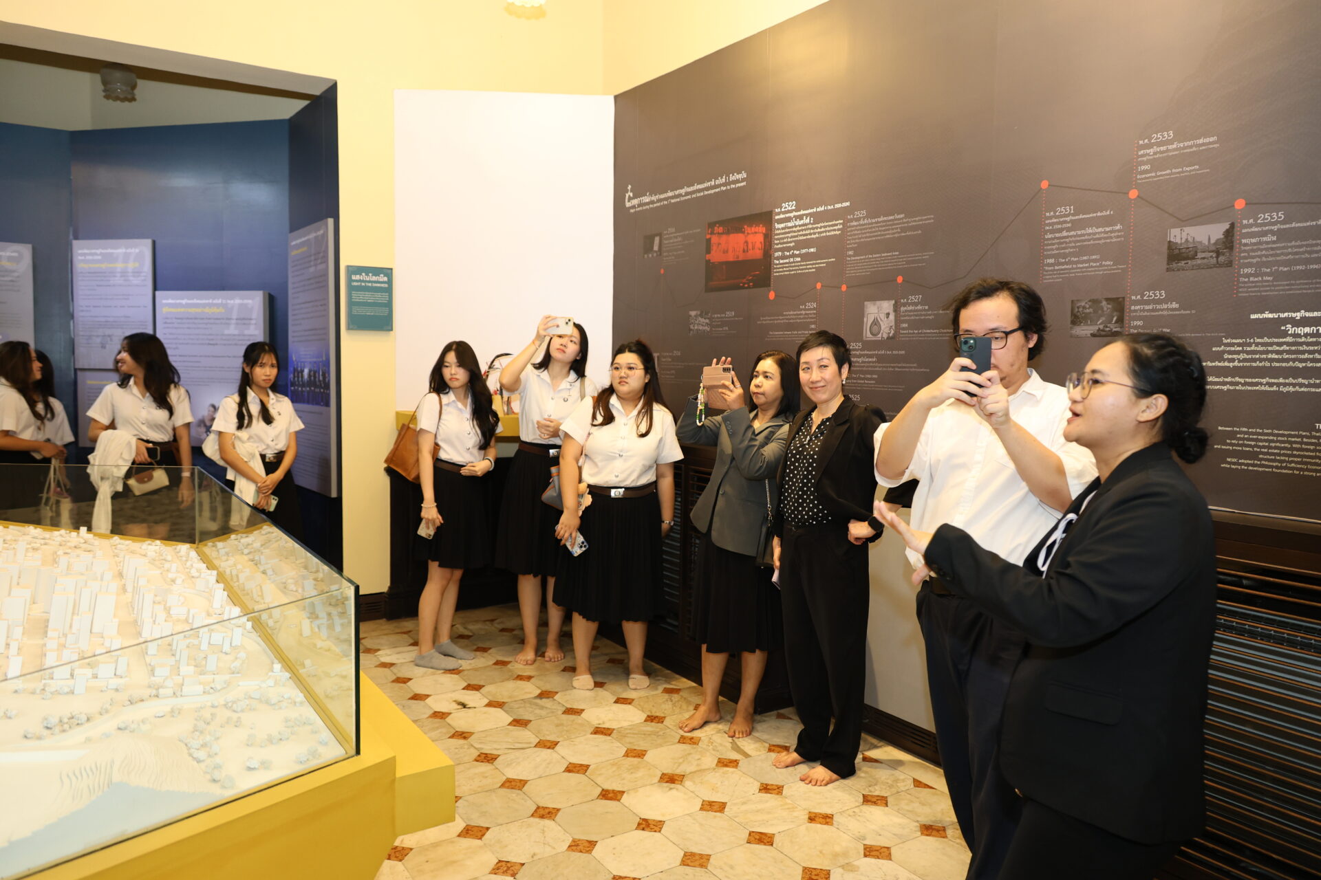 ภายหลังเสร็จสิ้นการบรรยาย คณะอาจารย์และนิสิตได้เข้าเยี่ยมชม พิพิธภัณฑ์สุริยานุวัตรเพื่อการพัฒนาประเทศ ณ อาคารสุริยานุวัตร ภายใน สศช. ซึ่งเป็นอาคารอนุรักษ์ที่มีความงดงามทางสถาปัตยกรรมและทรงคุณค่าทางประวัติศาสตร์ เพื่อศึกษาเรียนรู้ถึงรากฐานและวิวัฒนาการด้านเศรษฐกิจของประเทศไทย ผ่านเรื่องราวชีวประวัติของ มหาอำมาตย์เอก พระยาสุริยานุวัตร (เกิด บุนนาค)