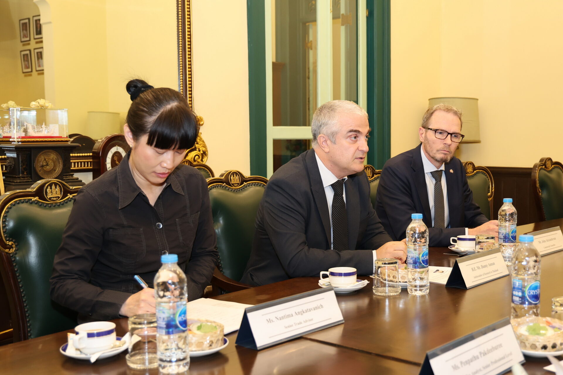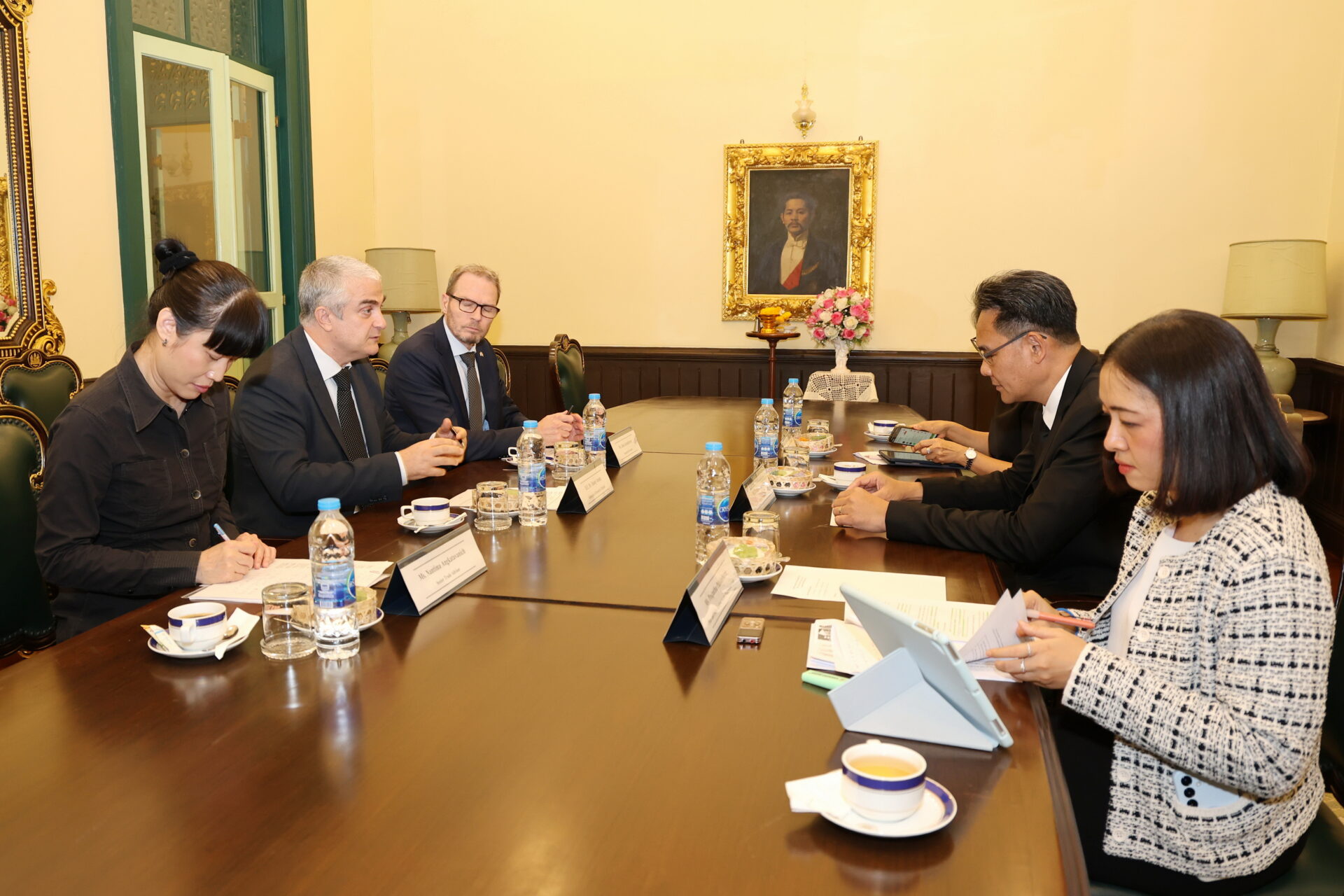วันนี้ (16 ธันวาคม 2568) นายดนุชา พิชยนันท์ เลขาธิการสภาพัฒนาการเศรษฐกิจและสังคมแห่งชาติ ให้การต้อนรับ ฯพณฯ นายแดนนี แอนนัน (H.E. Mr. Danny Annan) เอกอัครราชทูตเดนมาร์กประจำประเทศไทย เพื่อหารือแนวทางการจัดการโรคไม่ติดต่อเรื้อรัง (NCDs) ซึ่งปัจจุบันสร้างมูลค่าความสูญเสียทางเศรษฐกิจให้ไทยสูงถึง 1.6 ล้านล้านบาทต่อปี หรือเกือบ 10% ของ GDP ณ ห้องประชุมอาคารสุริยานุวัตร ชั้น 2 สำนักงานสภาพัฒนาการเศรษฐกิจและสังคมแห่งชาติ