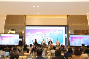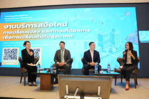 หลังจากนั้นได้มีการเสวนาในหัวข้อ “งานบริการสมัยใหม่ การเปลี่ยนแปลง และทักษะที่ต้องการ เพื่อการเปลี่ยนผ่านไปสู่อนาคต” โดยมีผู้ทรงคุณวุฒิร่วมอภิปรายและแลกเปลี่ยนความเห็น ประกอบด้วย (1) นางสาวสิริพร สุขสงวน ผู้อำนวยการ Academy Innovation and Strategic Partnership, SCB Academy (2) นายวศิน เจิดนภาพันธ์ Head of Strategic Partnerships and Products, True Digital Academy (3) ดร.ชินาวุธ ชินะประยูร Head of Digital Technology Academy Section บริษัท แอดวานซ์ อินโฟร์ เซอร์วิส จากัด (มหาชน) โดยมีนางสาวภัชชาร์ ภัทรเดชาธรรม ผู้ประกาศข่าว NBT เป็นผู้ดำเนินรายการเสวนา โดยนางสาวสิริพร สุขสงวน ได้นำเสนอเกี่ยวกับกลยุทธ์และการปรับตัวของธนาคารไทยพาณิชย์ในยุคดิจิทัล ซึ่งมีกลยุทธ์หลักคือ Digital bank with human touch โดยมีเป้าหมายในการผสมผสานบูรณาการทักษะดิจิทัลเข้ากับ Human skills เพื่อให้บริการลูกค้าได้อย่างรวดเร็ว แม่นยำ และสร้างประสบการณ์ที่ดี ซึ่งพนักงานทุกคนต้องพัฒนาทักษะพื้นฐานด้านเทคโนโลยีทั้ง AI Automation และ Data Analytics ขณะที่ในส่วนของ Human skills จะเน้นการพัฒนาทักษะการคิดเชิงวิเคราะห์ ความเห็นอกเห็นใจ การตอบโต้และการมีปฏิสัมพันธ์กับผู้อื่น โดยระบบการพัฒนาทักษะพนักงานจะเปลี่ยนมาสู่การเรียนรู้ระหว่างการทำงาน (Learning in the flow of work) โดยใช้รูปแบบ Micro-credential ซึ่งมีคุณลักษณะ 3 ประการคือ 1) Specific เพื่อแยกย่อยทักษะให้เฉพาะเจาะจงมากขึ้น 2) Competency base เน้นการลงมือทำจริง และ 3) Verify ตรวจสอบจากผู้เชี่ยวชาญ/ผลลัพธ์ที่ได้ โดยสิ่งที่ต้องพัฒนาแรงงานเพิ่มเติมคือ Learning Agility ต้องมีวิธีการเรียนรู้และใช้เครื่องมือได้อย่างรวดเร็ว และ Life Long Learning พนักงานต้องมีทัศนคติที่พร้อมเรียนรู้อย่างต่อเนื่องตลอดเวลา นายวศิน เจิดนภาพันธ์ ได้ให้ข้อมูลเกี่ยวกับการจ้างงานแบบเน้นทักษะ (Skill Hiring) และความสำคัญของการรู้เท่าทัน AI การพัฒนาบุคลากรของ True มีการทำ Micro-credential และมีการพัฒนาทักษะ AI ที่คำนึงถึง AI Awareness Assessment เพื่อประเมินสถานะความรู้ด้าน AI ในมิติต่าง ๆ ของบุคคล รวมถึงเรื่องจริยธรรมในการใช้ AI โดยทักษะสำคัญที่จะทำให้แรงงานในยุคปัจจุบันอยู่รอดในตลาดงานได้ คือ Creative Thinking Critical Thinking และ Empathy รวมถึงทักษะการใช้ AI อย่างมีประสิทธิภาพในฐานะผู้ควบคุมการใช้ AI โดยต้องเป็นผู้วิเคราะห์ว่าจะใช้ข้อมูลหรือผลลัพธ์ของ AI อย่างไรให้ถูกต้อง ทั้งนี้ ได้นำเสนอถึงความท้าทายและข้อเสนอแนะในการพัฒนาทักษะแรงงานที่สำคัญคือ หลายบริษัทลงทุนด้าน AI สูง แต่แรงงานไม่มีทักษะในการใช้ AI ดังนั้น ต้องมีการส่งเสริมการพัฒนาทักษะด้าน AI ของแรงงานตั้งแต่ในสถาบันการศึกษา รวมถึงการพัฒนาทักษะแรงงานในหลักสูตรด้าน AI ที่มีคุณภาพ (Re/Up skill) ท้ายที่สุดนี้ ดร.ชินาวุธ ชินะประยูร เน้นถึงปัญหาเชิง