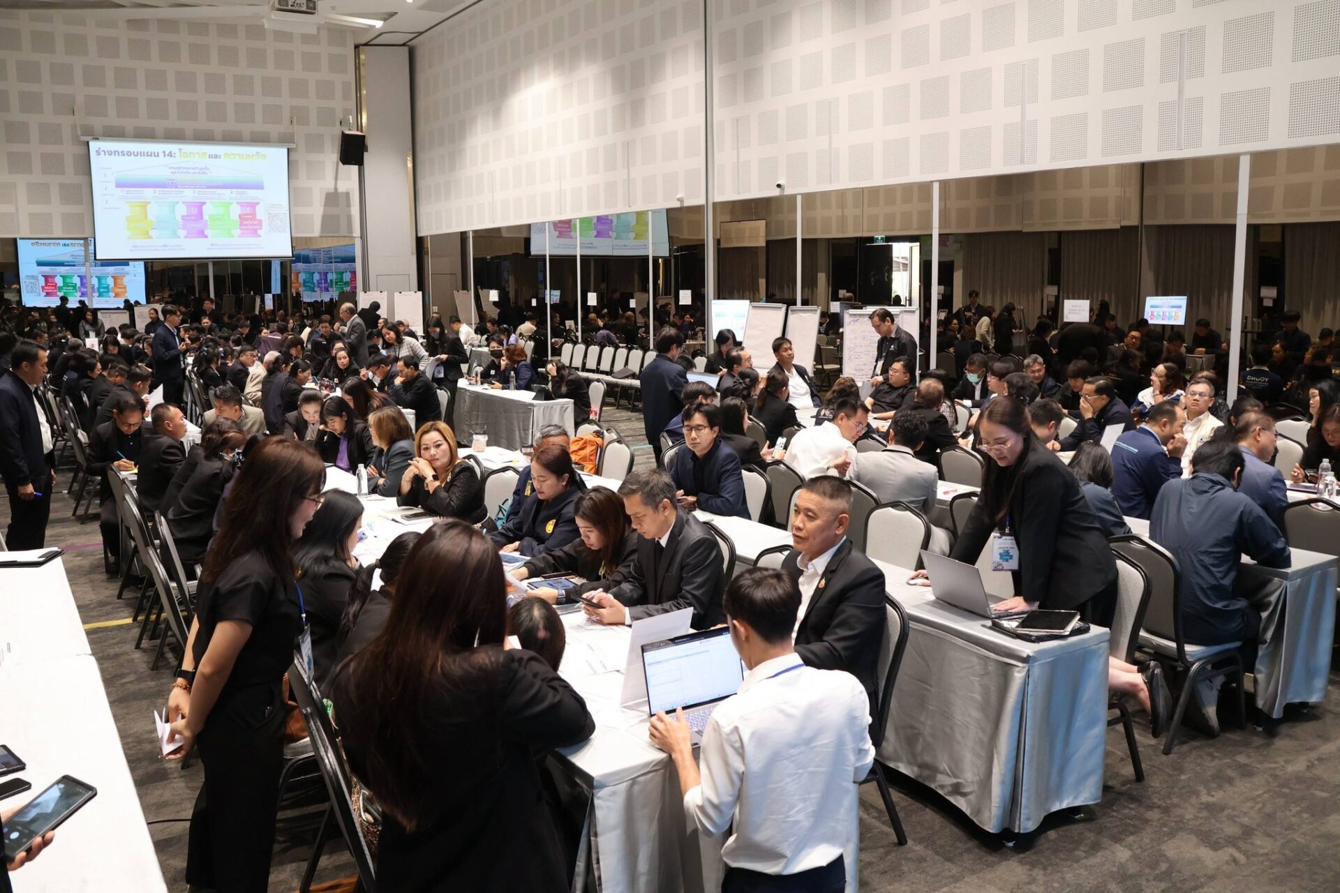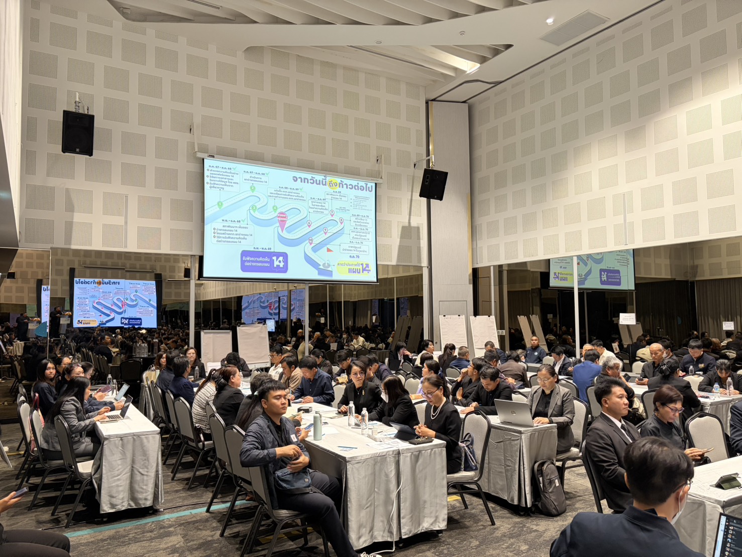 เวทีการรับฟังความเห็นหลัก เมื่อวันที่ 10 กุมภาพันธ์ 2569 นายวันฉัตร สุวรรณกิตติ รองเลขาธิการสภาพัฒนาการเศรษฐกิจและสังคมแห่งชาติ พร้อมด้วยผู้บริหารและเจ้าหน้าที่ สศช. เปิดเวทีรับฟังความคิดเห็นร่วมกับผู้แทนจากภาคส่วนต่าง ๆ ในกลุ่มจังหวัดภาคจังหวัดตะวันออกเฉียงเหนือตอนบน 1 (จังหวัดอุดรธานี หนองบัวลำภู เลย หนองคาย และบึงกาฬ) ณ โรงแรมเวลาดี จังหวัดอุดรธานี มีผู้เข้าร่วมกว่า 140 คน โดยที่ประชุมได้แสดงความคิดเห็นต่อสาระสำคัญของร่างกรอบแผนพัฒนาฯ ฉบับที่ 14 ในภาพรวม อาทิ การขับเคลื่อนแผนพัฒนาฯ ให้เกิดผลอย่างเป็นรูปธรรมในทางปฏิบัติ และการให้ความสำคัญกับชุมชนในการร่วมกำหนดและขับเคลื่อนการพัฒนาให้สอดคล้องกับบริบทพื้นที่ นอกจากนี้ ยังได้แสดงความคิดเห็นต่อ 5 เสาหลักการพัฒนา ดังนี้ เสาหลักที่ 1 การพลิกโฉมโครงสร้างเศรษฐกิจ อาทิ ส่งเสริมให้เกษตรกรและผู้ประกอบการปรับรูปแบบการผลิตให้ตอบสนองต่อความต้องการของตลาด พัฒนาเศรษฐกิจฐานรากอย่างสร้างสรรค์ผ่านการสร้างแบรนด์และพัฒนาตลาดดิจิทัล เสาหลักที่ 2 การปฏิรูปภาครัฐ อาทิ แก้ไขปัญหาความล่าช้าและซ้ำซ้อนของกระบวนการทำงานภาครัฐ การประเมินและแต่งตั้งโยกย้ายบุคลากรด้วยความโปร่งใสและเป็นธรรม เพื่อสร้างขวัญกำลังใจและลดความเสี่ยงด้านการทุจริต เสาหลักที่ 3 การยกระดับทุนมนุษย์ อาทิ สร้างความมั่นคงทางรายได้และคุณภาพชีวิตควบคู่กับการเพิ่มจำนวนประชากร พัฒนาทักษะแรงงานนอกระบบโดยเฉพาะภาคเกษตรให้มีศักยภาพ เสาหลักที่ 4 การบริหารจัดการทรัพยากรและสิ่งแวดล้อมอย่างยั่งยืน อาทิ ส่งเสริมกลไกคาร์บอนเครดิต (Carbon Credit) และเศรษฐกิจหมุนเวียน เพื่อให้เกิดการใช้ทรัพยากรอย่างคุ้มค่า ผลักดันกฎหมายด้านสิ่งแวดล้อมที่เน้นการบังคับใช้อย่างจริงจัง และปรังปรุงการบริหารจัดการน้ำให้เป็นระบบ และเสาหลักที่ 5 การถ่ายทอดและลงทุนในวิจัย เทคโนโลยี และนวัตกรรม อาทิ จัดทำระบบฐานข้อมูลกลางแบบ One Stop Service เพื่อให้การบริหารจัดการข้อมูลได้อย่างเป็นระบบ และเพิ่มความสะดวกแก่ผู้ใช้บริการ ส่งเสริมการนำผลงานวิจัยไปใช้ประโยชน์เชิงพาณิชย์อย่างเป็นรูปธรรม เพื่อให้เกิดการต่อยอดและสร้างมูลค่าเพิ่มทางเศรษฐกิจ