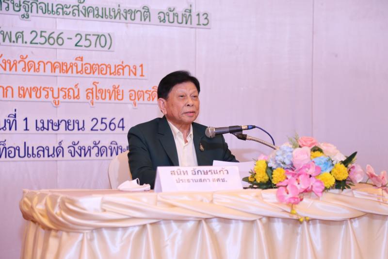 เมื่อวันที่ 1 เมษายน 2564 ศาสตราจารย์ ดร.สนิท อักษรแก้ว ประธานสภาพัฒนาการเศรษฐกิจและสังคมแห่งชาติ เป็นประธานเปิดการประชุมระดมความเห็นต่อ “กรอบแผนพัฒนาเศรษฐกิจและสังคมแห่งชาติ ฉบับที่ 13 (พ.ศ. 2566 – 2570)” ระดับกลุ่มจังหวัดภาคเหนือตอนล่าง 1(พิษณุโลก ตาก สุโขทัย อุตรดิตถ์ เพชรบูรณ์) ณ โรงแรมท็อปแลนด์ จังหวัดพิษณุโลก โดยมีนายดนุชา พิชยนันท์ เลขาธิการสภาพัฒนาการเศรษฐกิจและสังคมแห่งชาติ กล่าวรายงานถึงวัตถุประสงค์ของการจัดระดมความคิดเห็นในครั้งนี้ และได้รับเกียรติจากศาสตราจารย์เกียรติคุณ นายแพทย์รัชตะ รัชตะนาวิน กรรมการสภาพัฒนาการเศรษฐกิจและสังคมแห่งชาติ พลเอก ดร.ศิริ ทิวะพันธุ์ อดีตแม่ทัพภาคที่ 3 และผู้บริหารระดับจังหวัด อาทิ นายรณชัย จิตรวิเศษ ผู้ว่าราชการจังหวัดพิษณุโลก เข้าร่วมประชุม และผู้เข้าร่วมประชุมประกอบด้วย หน่วยงานราชการ องค์กรปกครองส่วนท้องถิ่น สถาบันการศึกษา ภาคธุรกิจเอกชน เครือข่ายภาคประชาสังคม และนักวิชาการ จำนวนประมาณ 150 คน